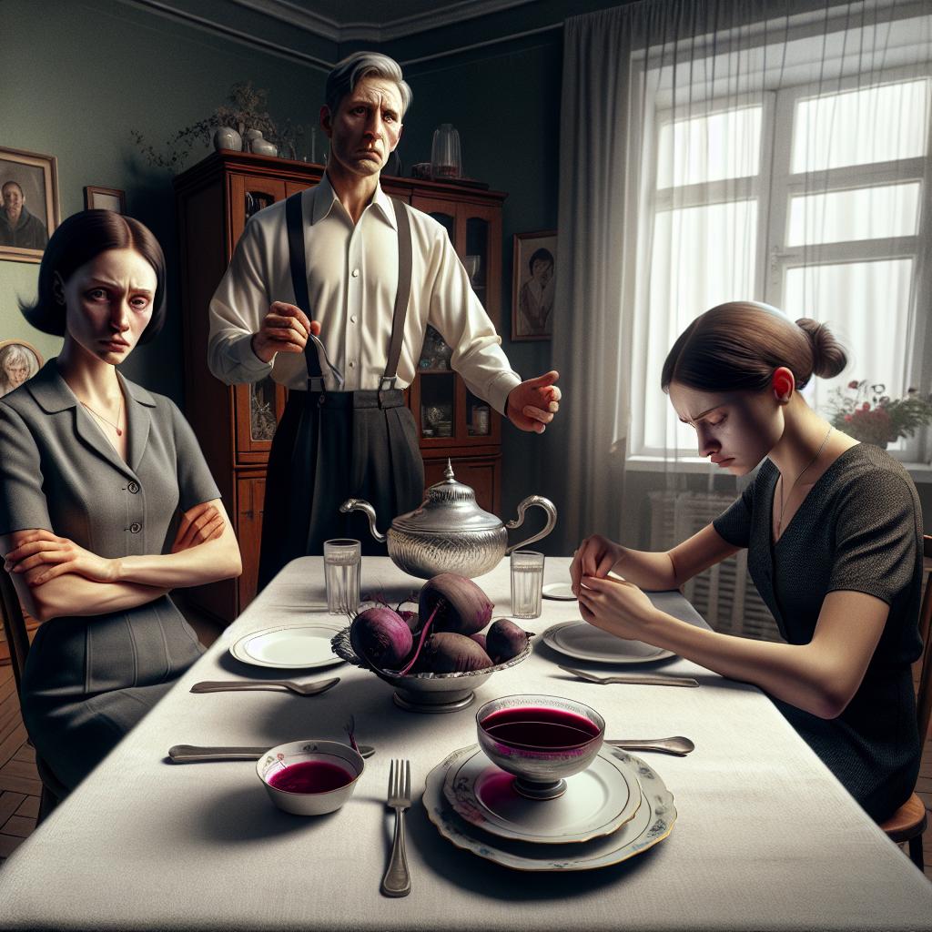 Я подняла взгляд от тарелки. На белоснежном фарфоре застыла капля свекольного сока, напоминающая следы преступления.