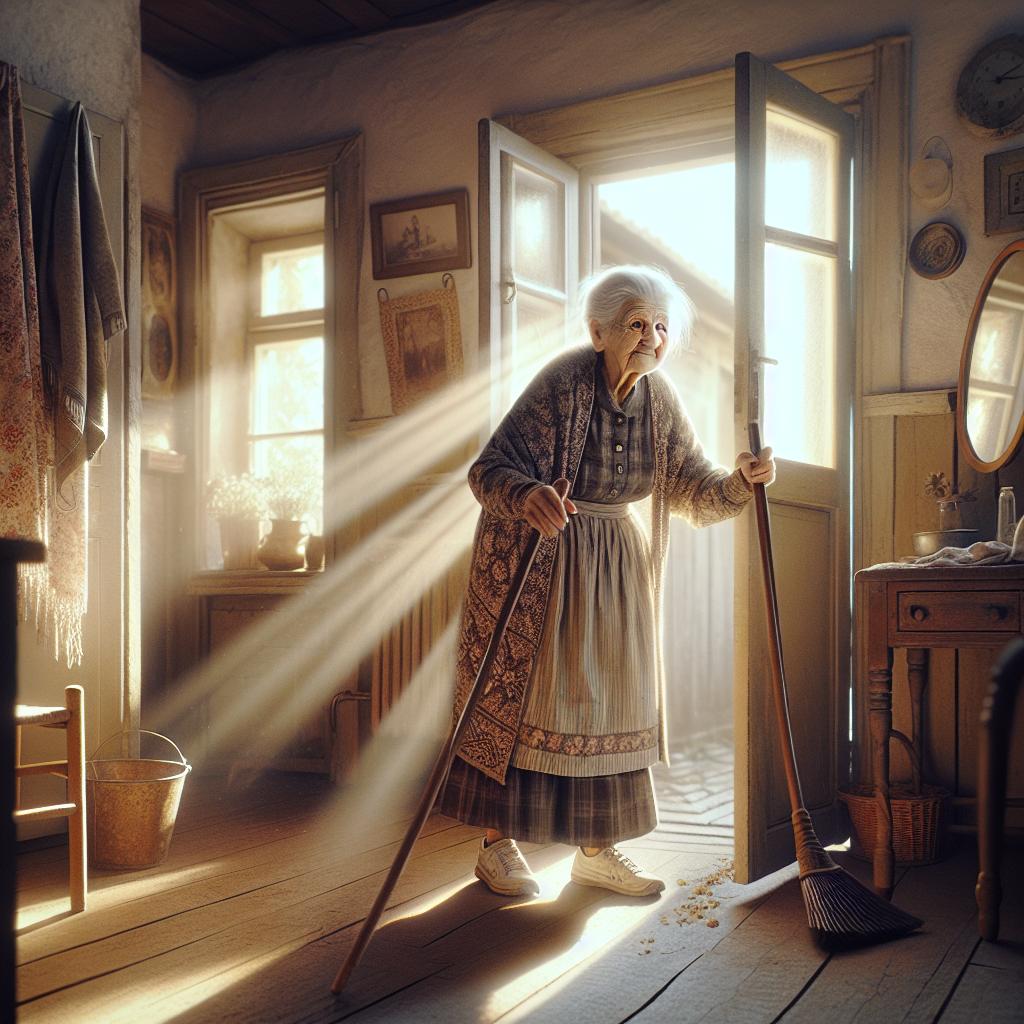 Углы подмела, паутину со стен сняла, мух прогнала.