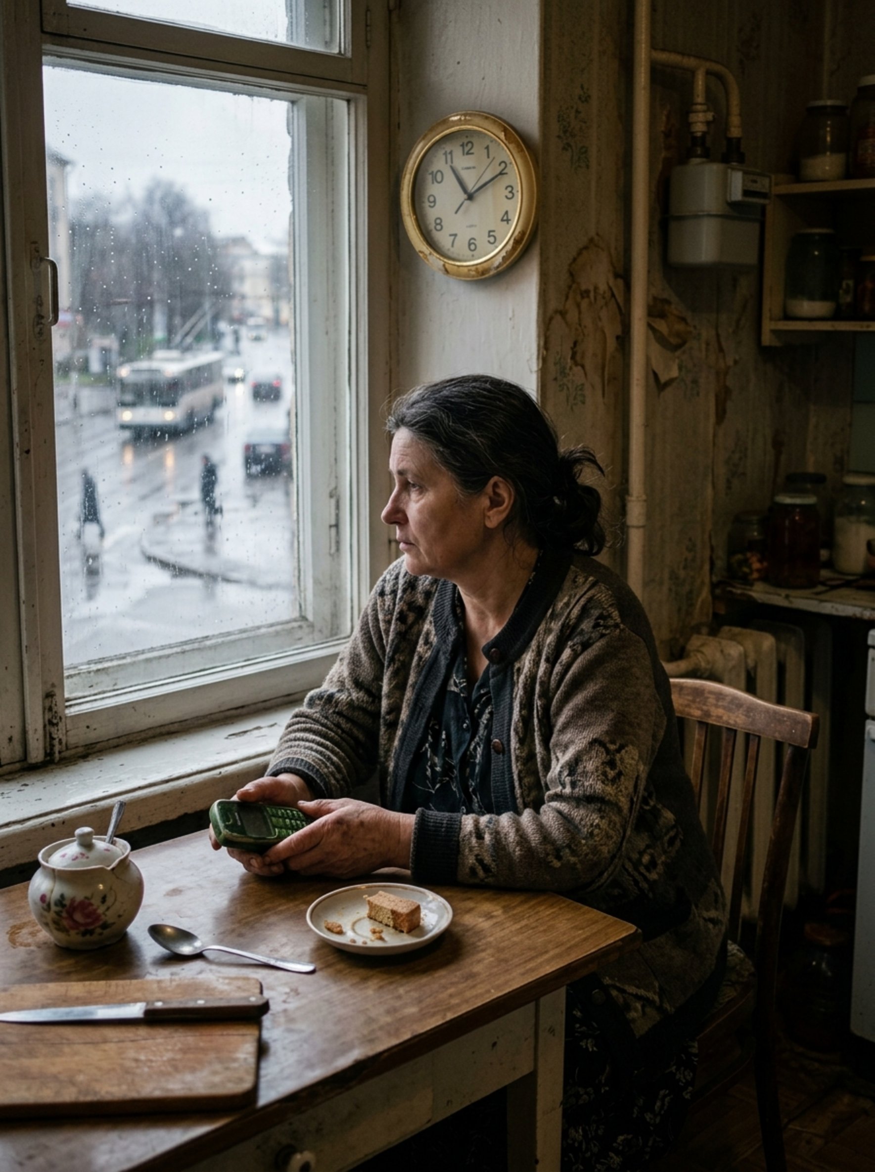 На кухне у Тараса всё оставалось так же, как всегда. Банка с заваркой у плиты, сахарница с треснувшей крышкой, нож на разделочной доске — словно хозяин лишь на минуту вышел в соседнюю комнату и сейчас вернётся дорезать серый хлеб ровными ломтями. На подоконнике тихо отсчитывали время круглые часы с облупленной позолотой. В пустой квартире этот звук перестаёт быть фоном. Он становится почти голосом.