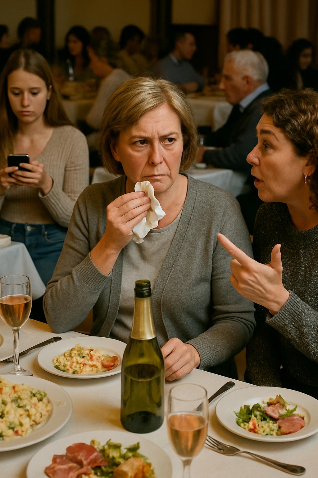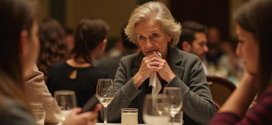 Рядом с Тамарой сидела тётя Людмила — тихая, худенькая женщина, дальняя родственница, которую в семье обычно не замечали.