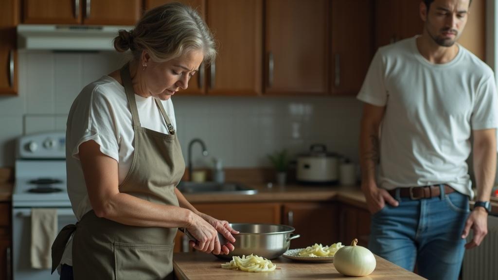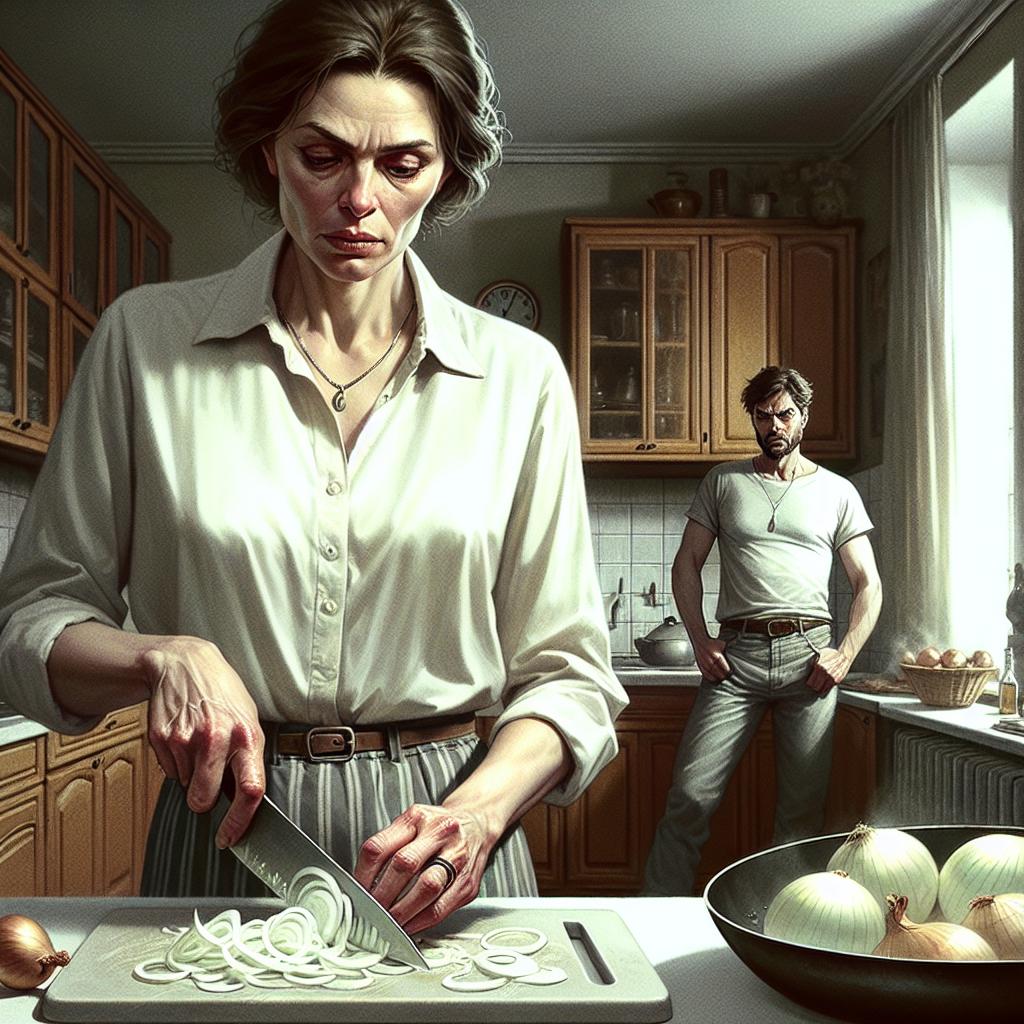 Она сделала вид, что не обращает внимания, продолжая аккуратно шинковать лук.