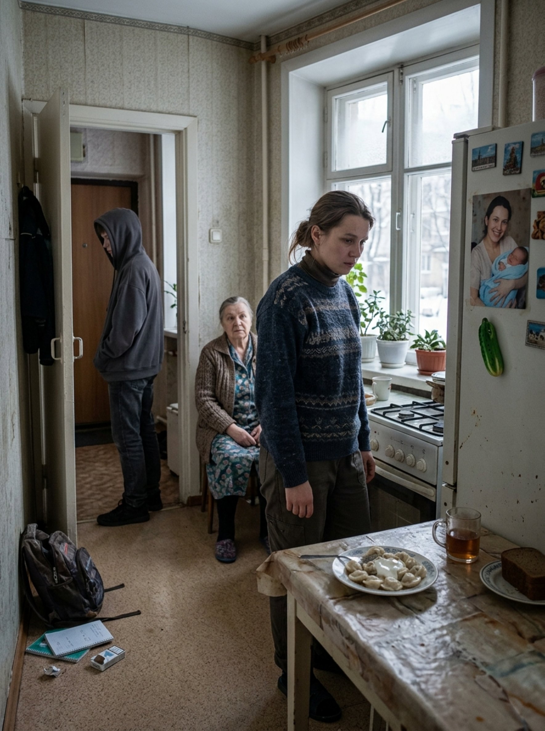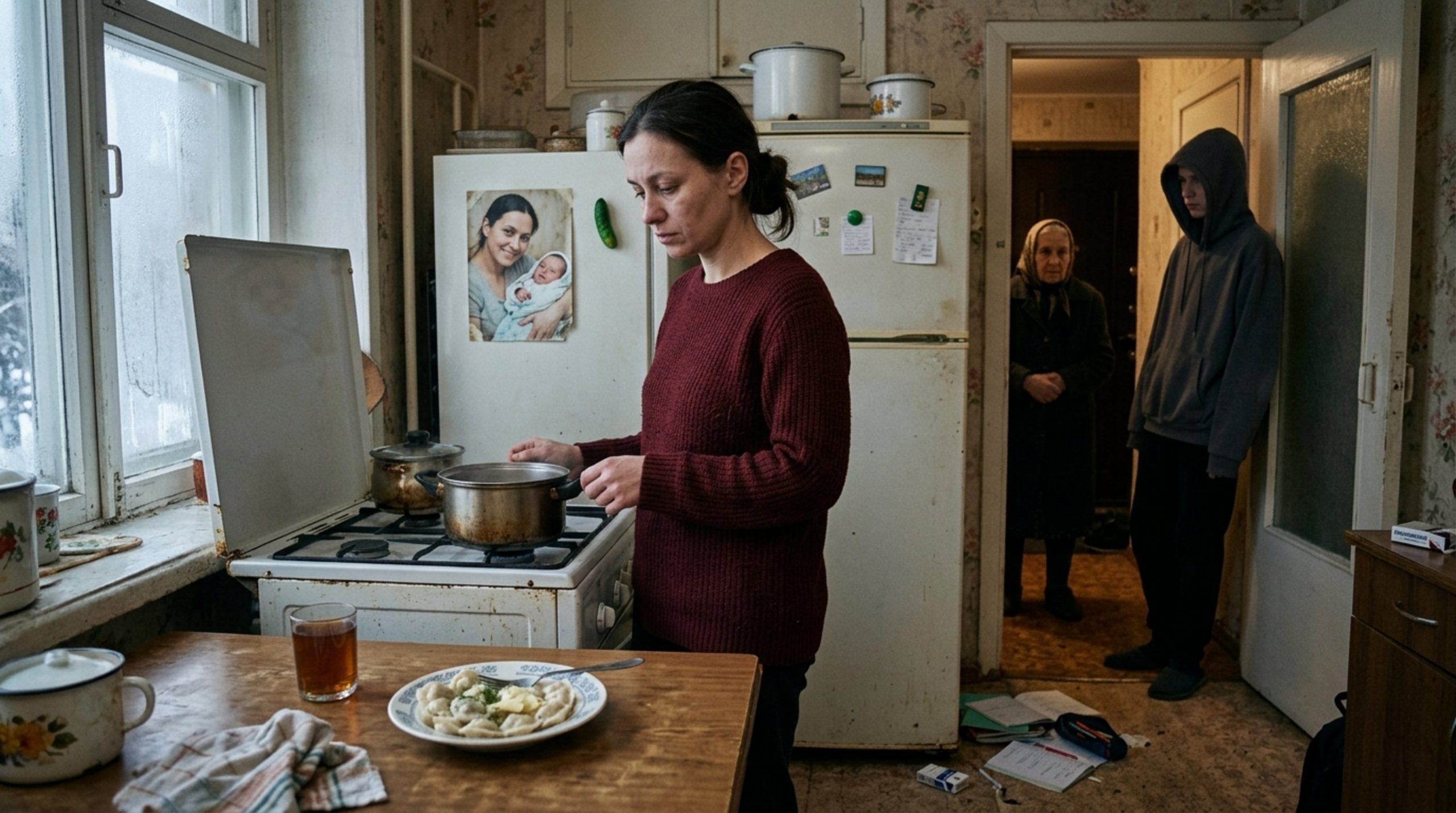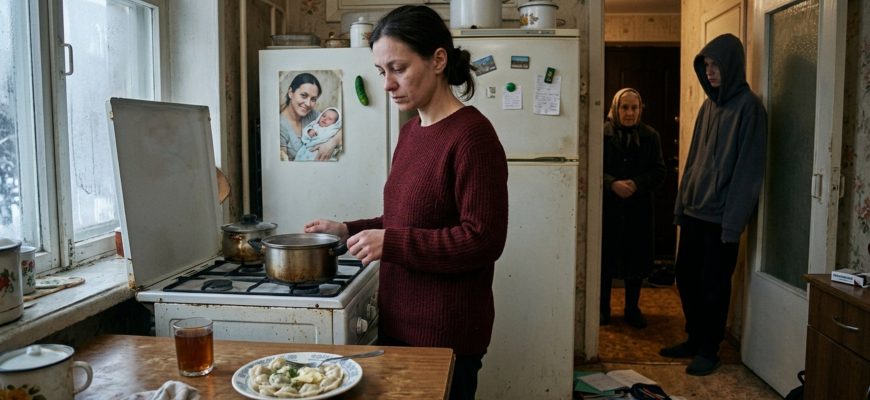 Я осталась одна на кухне. Пельмени в тарелке остыли, сверху затянулись бледной плёнкой. На холодильнике висела фотография из роддома: я — в больничном халате, он — в пелёнке. Мне тридцать, лицо круглое, измученное, но счастливое. Недавно я сменила магнит — старый треснул, теперь зелёный, в форме огурца. Снимок оставила прежний.