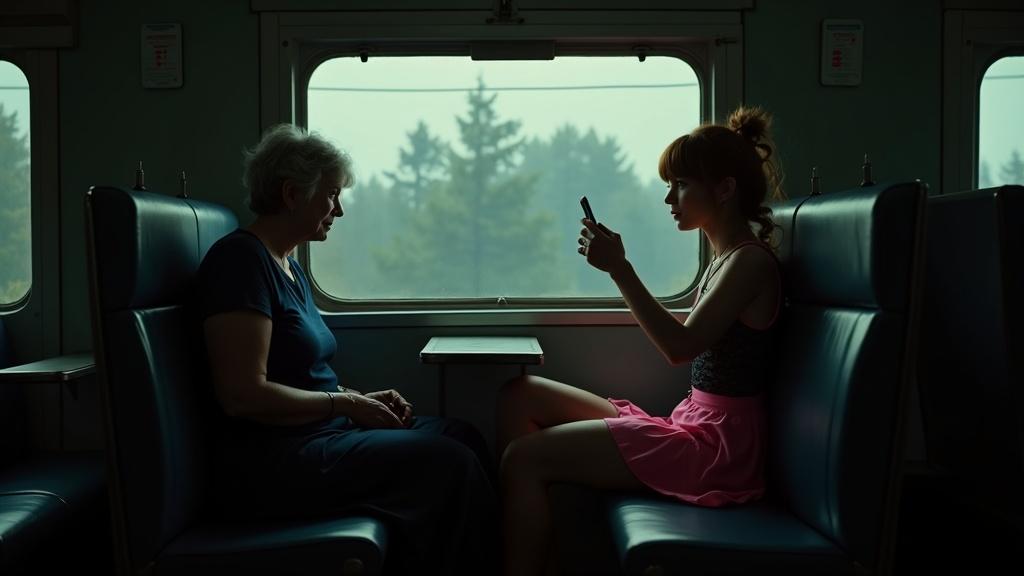 Это последняя электричка, кроме них в вагоне никого нет.