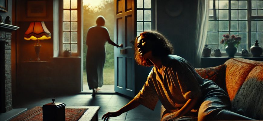 В вечерних летних сумерках на диване в зале лежит женщина. Она не спит, а находится в полудрёме. Сон не берёт. Третьи сутки не может спать.