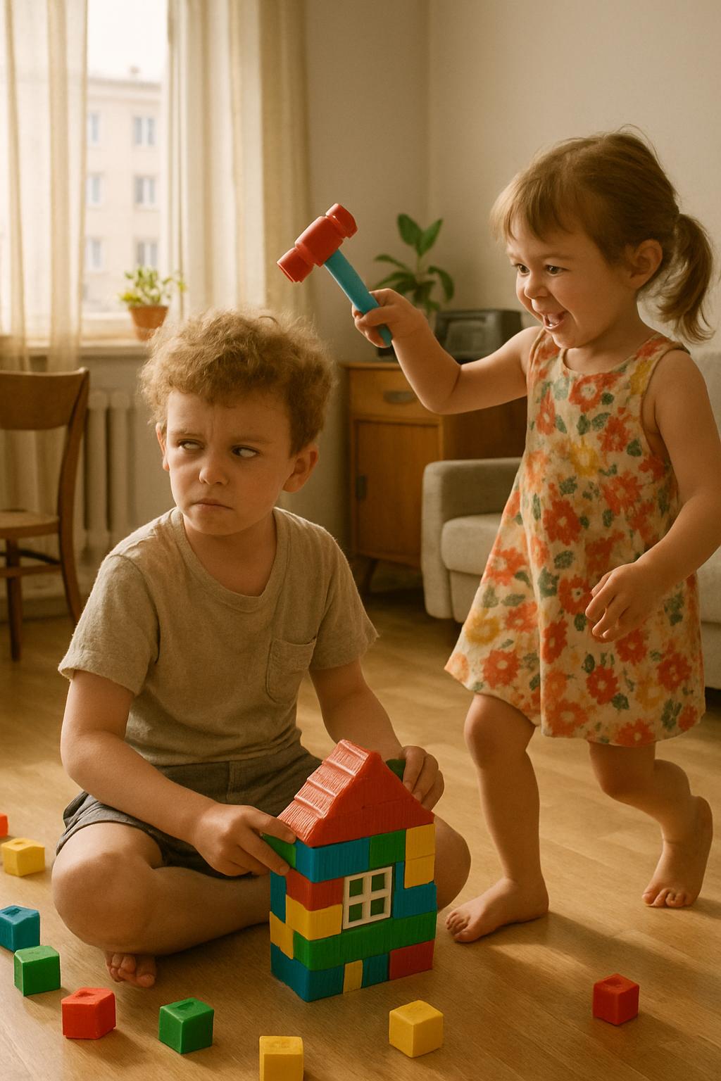В то утро в детском саду мальчик был занят важным делом: строил домик из конструктора, когда вдруг почувствовал удар по затылку — позади стояла Оля Литвинова с детским пластмассовым молоточком, издающим противный звук при ударе.