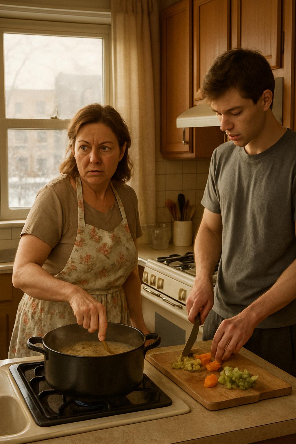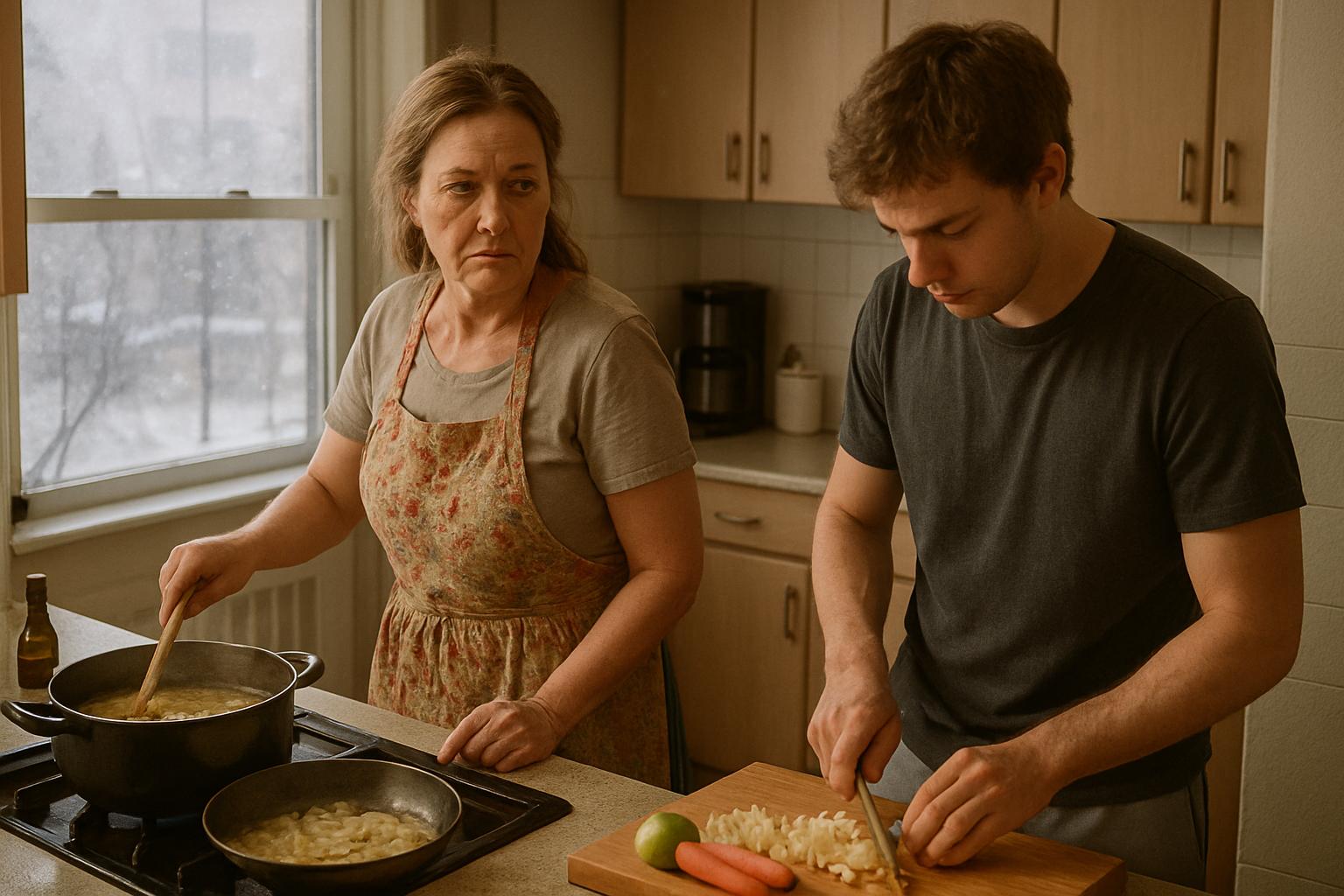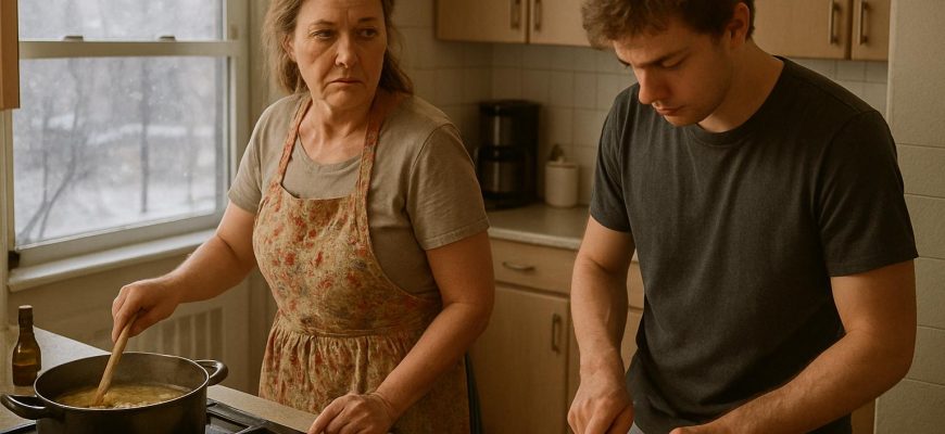 Игорь метался рядом, время от времени заглядывая на кухню с виноватым выражением. — Оля, может, помочь чем-нибудь? — спрашивал он. — Да помогай уже, — устало ответила она, не оборачиваясь от плиты. — Вот, нарежь салат.