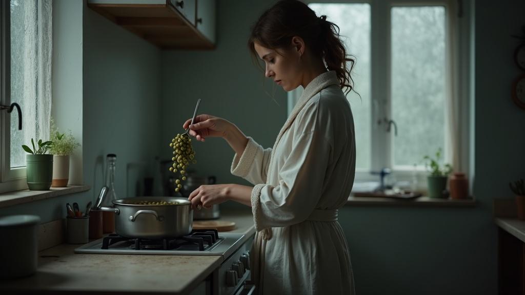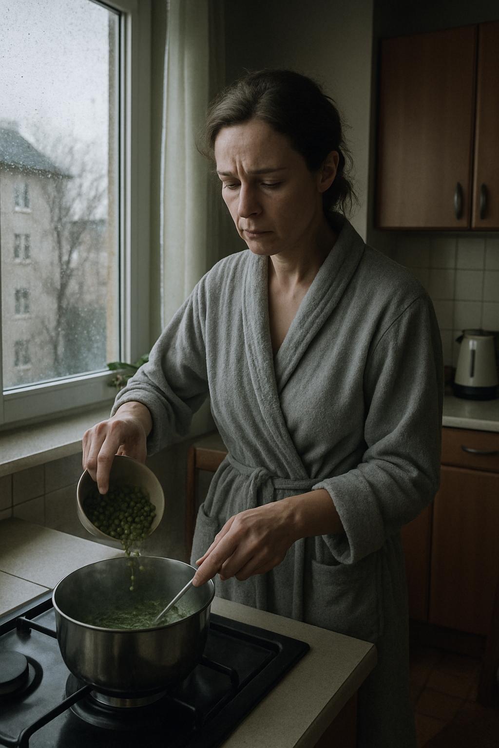 Она молча продолжила помешивать, а Алексей, не заметив смены настроения, отошел к холодильнику за молоком. — Только смотри, чтобы горох хорошо разварился, — бросил он через плечо. — В прошлый раз он был какой-то жестковатый.