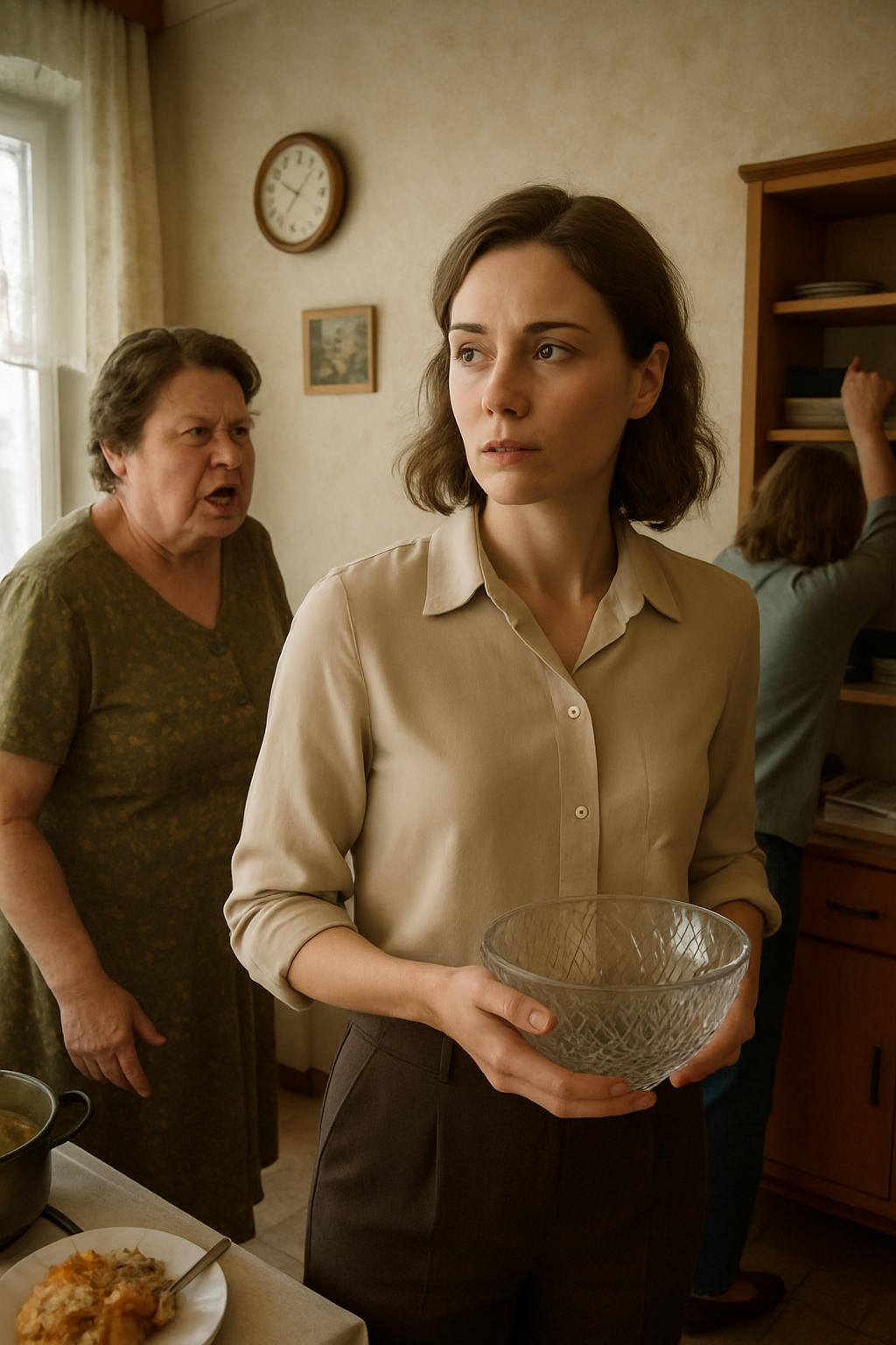 Наташа застыла, держа в руках хрустальную салатницу.