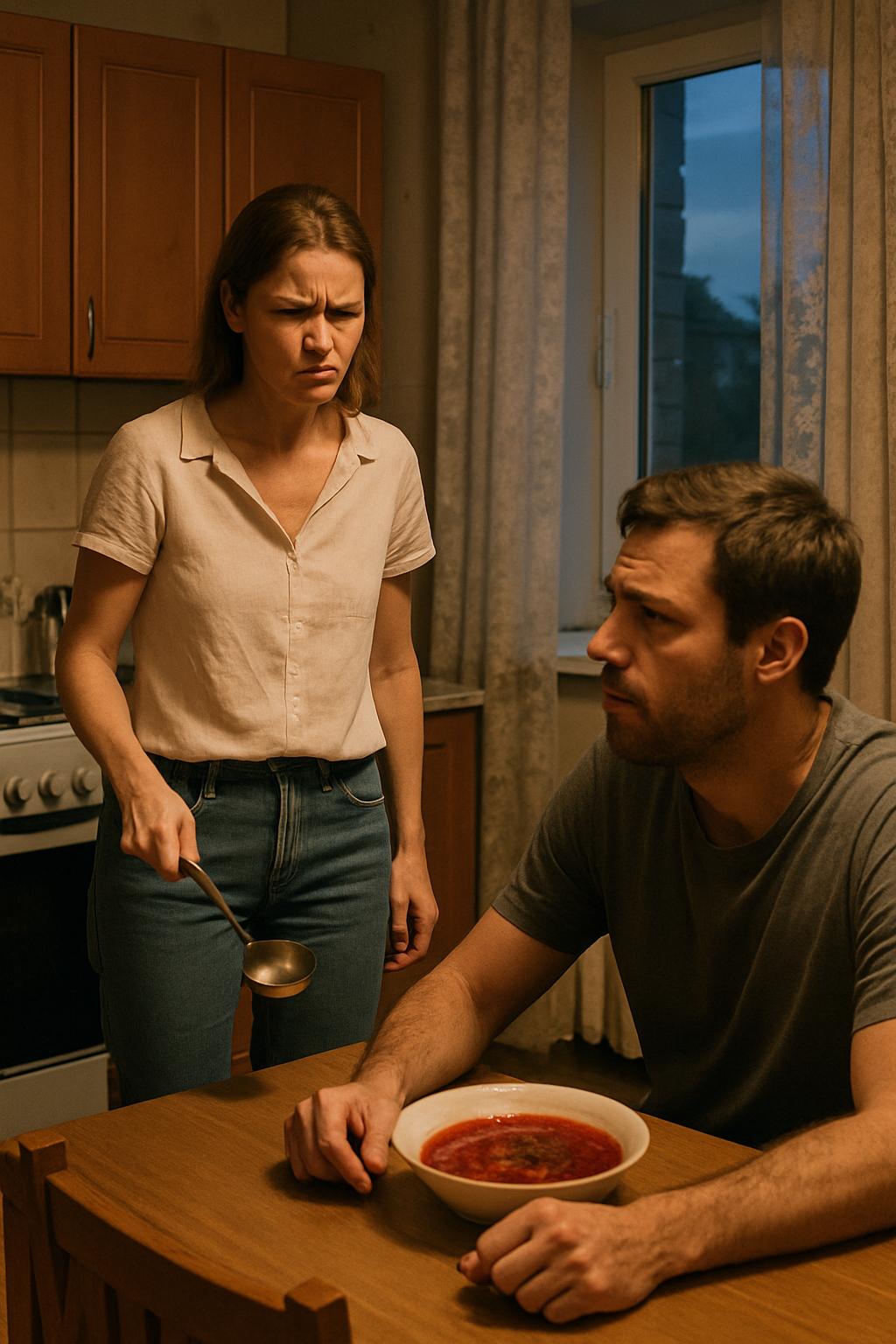 Я стояла на кухне, с половником в руке, пристально глядя на мужа.