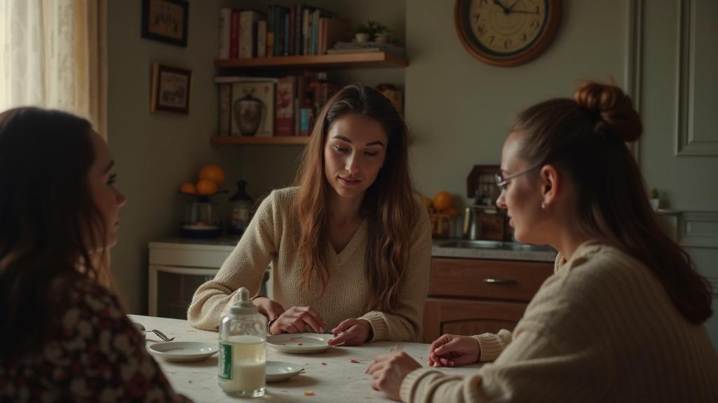 Алексей рядом оживлённо обсуждал что-то с двоюродным братом, не замечая состояния жены. «Три месяца назад всё было иначе», — подумала Оксана, размешивая салат на тарелке.