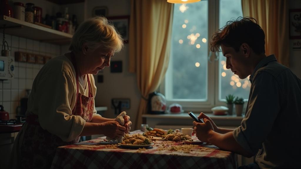 Алексей сидел за кухонным столом, уткнувшись в телефон.