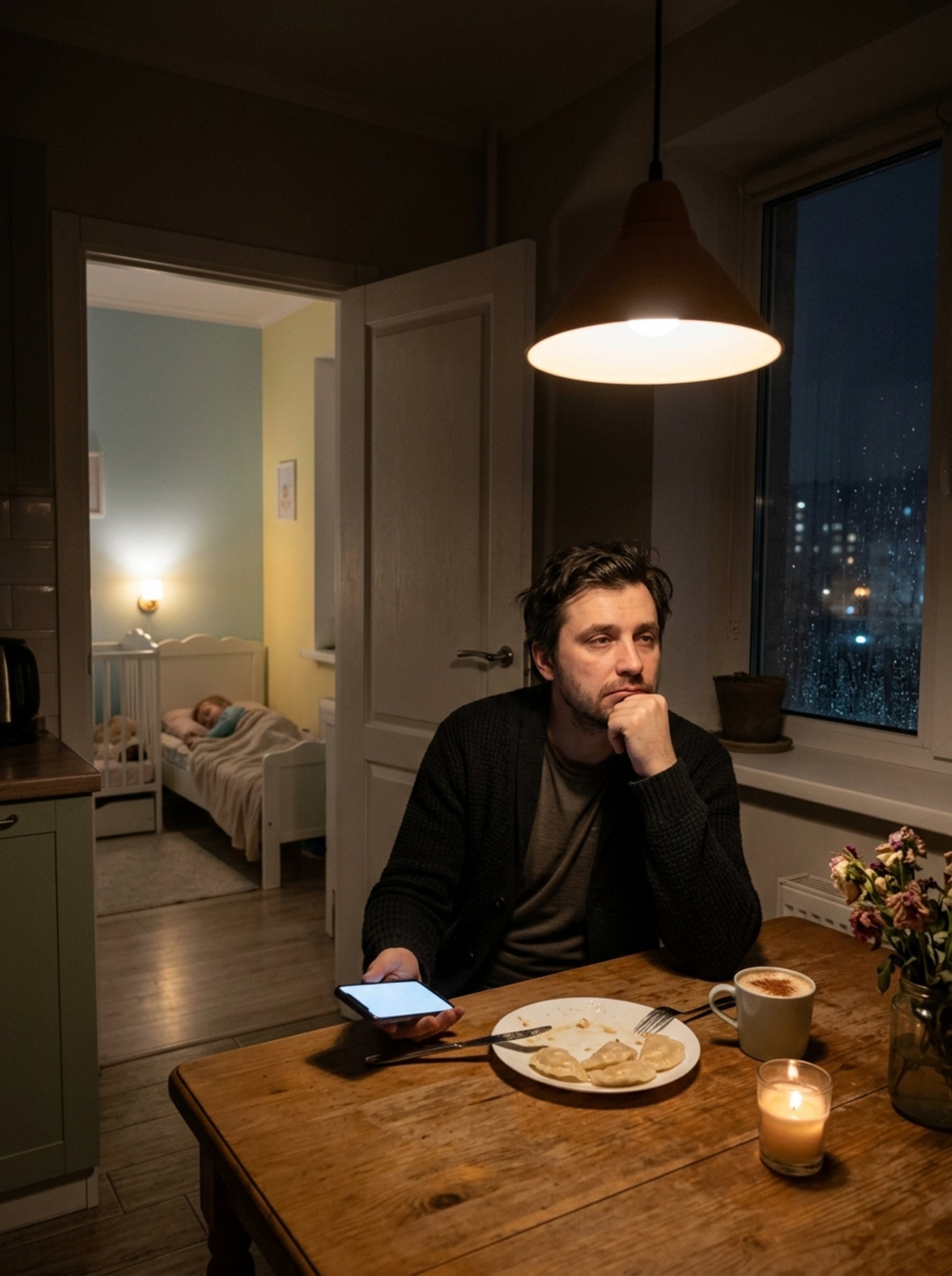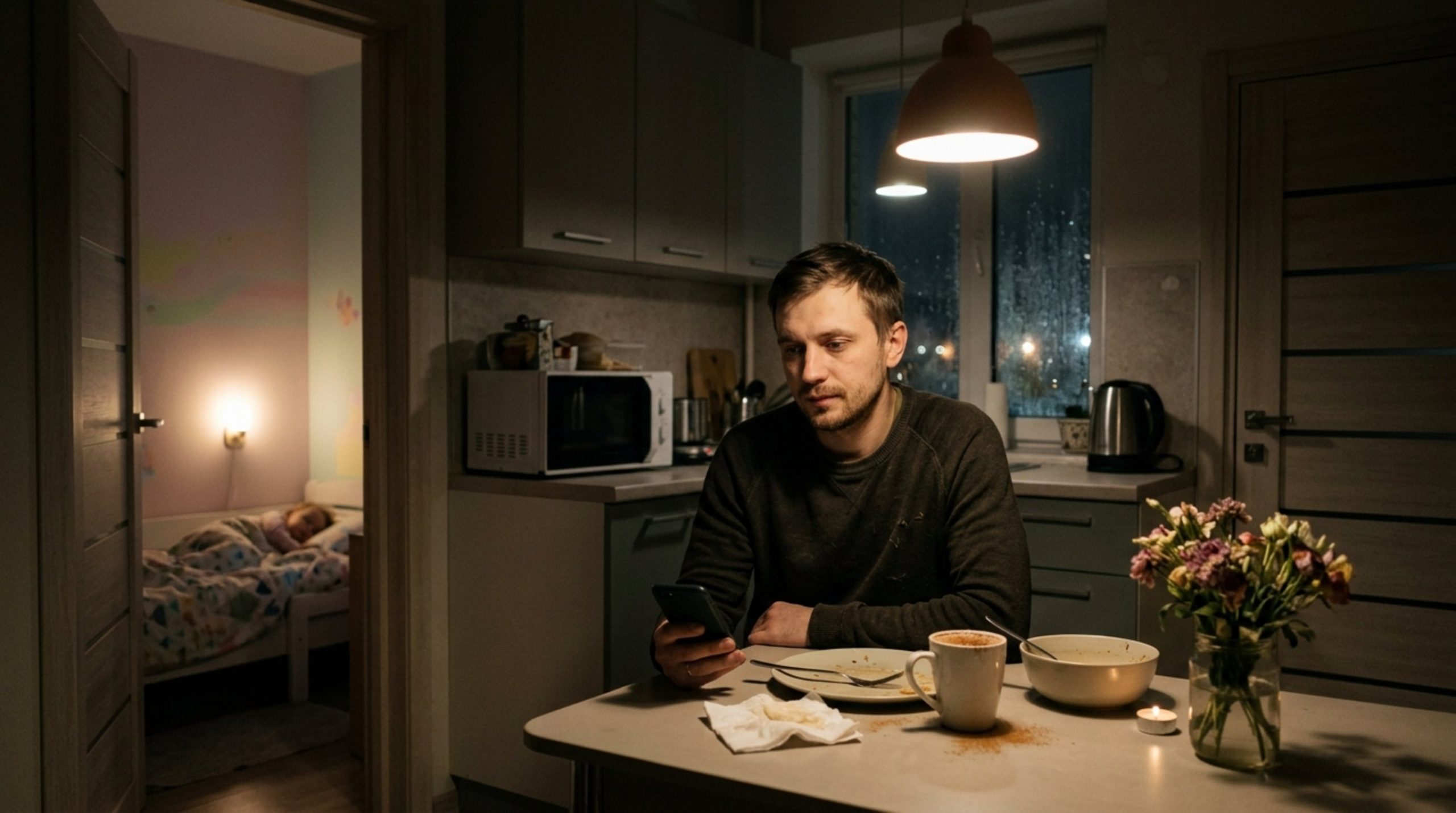 Как-то ночью он проснулся и обнаружил, что рядом пусто. На кухне горел лишь слабый свет от экрана телефона. Оксана сидела в темноте, перед ней стояла почти пустая бутылка вина, хотя после рождения Марии она почти не притрагивалась к алкоголю.