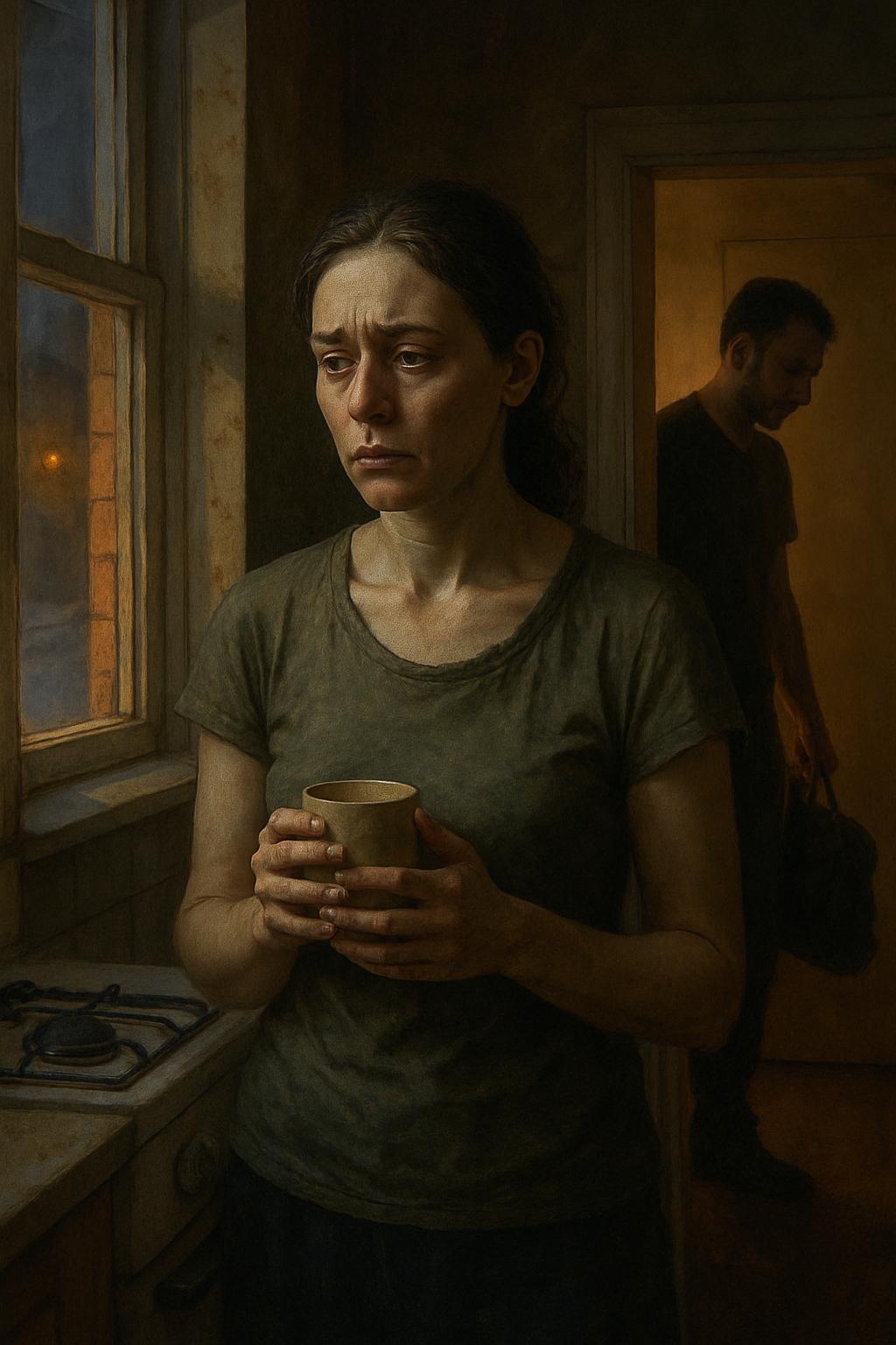 Ольга стояла у окна, крепко сжимая пальцами чашку с едва тёплым чаем.