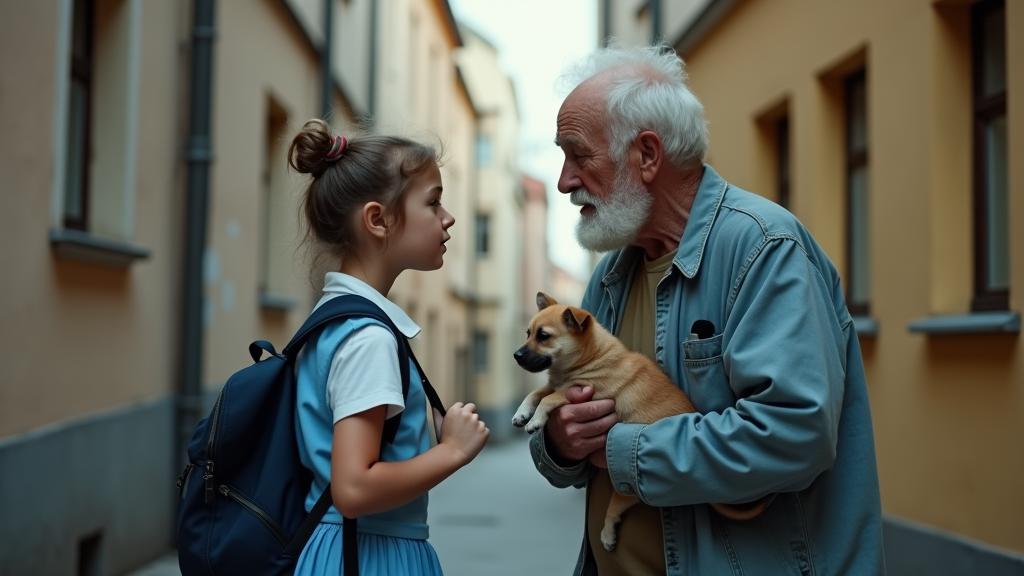 Однажды, возвращаясь домой из школы, Уля встретила старичка. Он держал подмышкой маленькую дрожащую собачку.