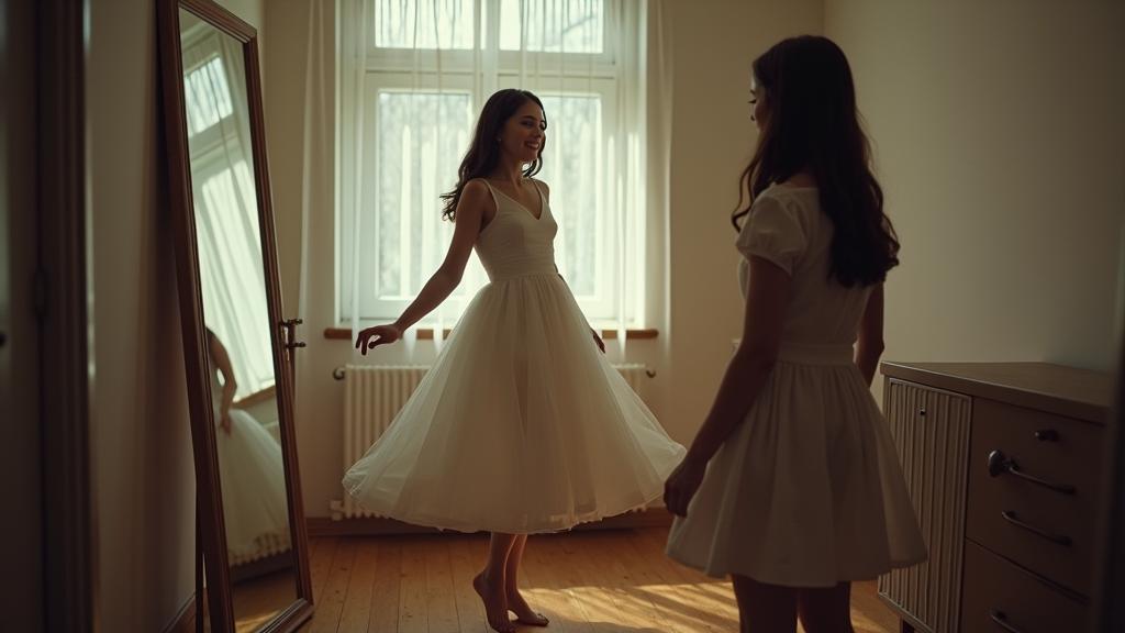 Девушка крутиться у зеркала, чудо, как хороша.