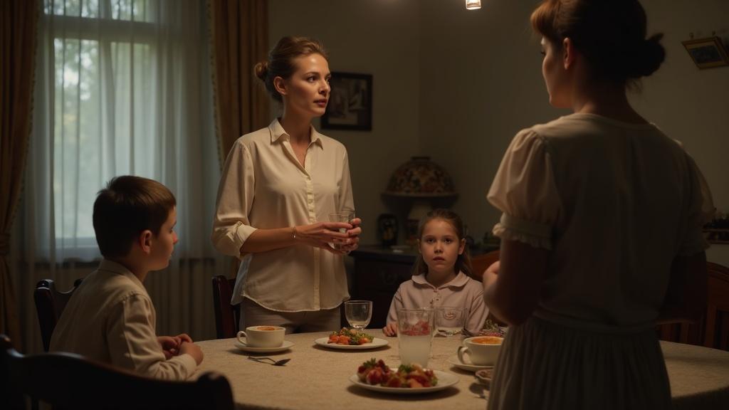 Только что они радостно рассказывали бабушке о школьных успехах сына и увлечениях дочери, а теперь сидели, опустив глаза. — Мама, они всего лишь разговаривали, — тихо вмешался Алексей, муж Ольги. — Разговаривали? — свекровь фыркнула с презрением. — Они орали на весь стол!
