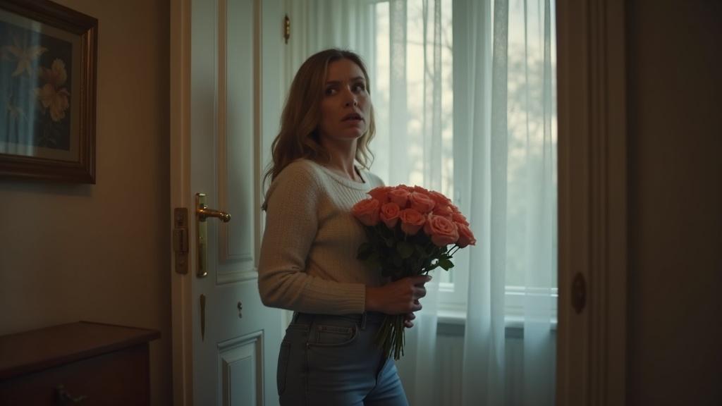 Я автоматически подумала, что это соседка снова пришла за солью, но на пороге стоял курьер с большим букетом коралловых роз. — Ничего себе… — вырвалось у меня, когда я увидела цветы. — Вот это сюрприз… На мгновение мне даже показалось, что сегодняшняя дата действительно станет исключением из всех правил. — С праздником, — улыбаясь, произнёс курьер, но тут же вздрогнул от резкой мелодии и полез в карман. — Извините, мне звонят по поводу этой доставки… — Ничего страшного, — ответила я. — Одну минуту, — пробормотал он, нахмурившись, и, взяв вызов, включил громкую связь. — Добрый день, — раздался встревоженный голос моего мужа. — Вы ещё не передали заказ? — Пока нет, я как раз… — Отлично, — с явным облегчением перебил его Алексей. — Я ошибся с адресом.