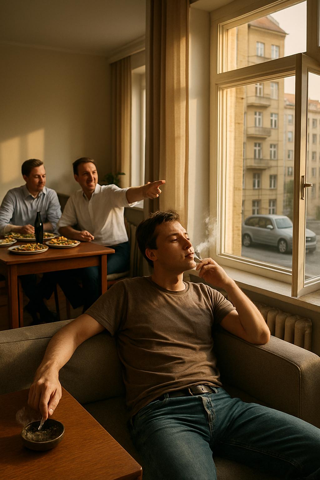 Алексей откинулся на диване и с удовольствием затянулся сигаретой, выдыхая дым в сторону приоткрытого окна.