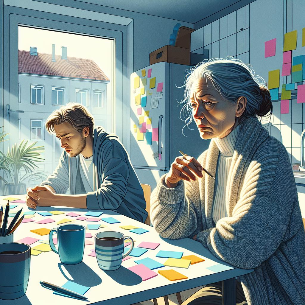 Кухонная стена была усыпана разноцветными стикерами — это Тамара так пыталась упорядочить процесс развода.