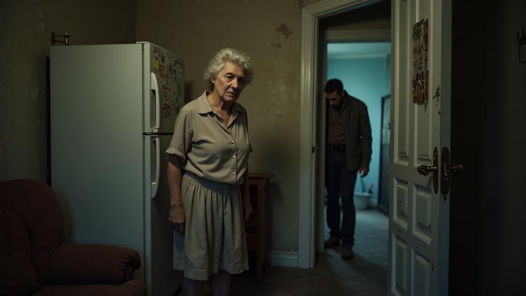 Перед ними стояла пожилая женщина, с аккуратными косами, в сером пальто и с тревожным взглядом. В руках — зонт и клетчатая сумка типа тех, что пенсионеры покупают на рынках. Лицо было бледным, с мешками под глазами, но взгляд острым.