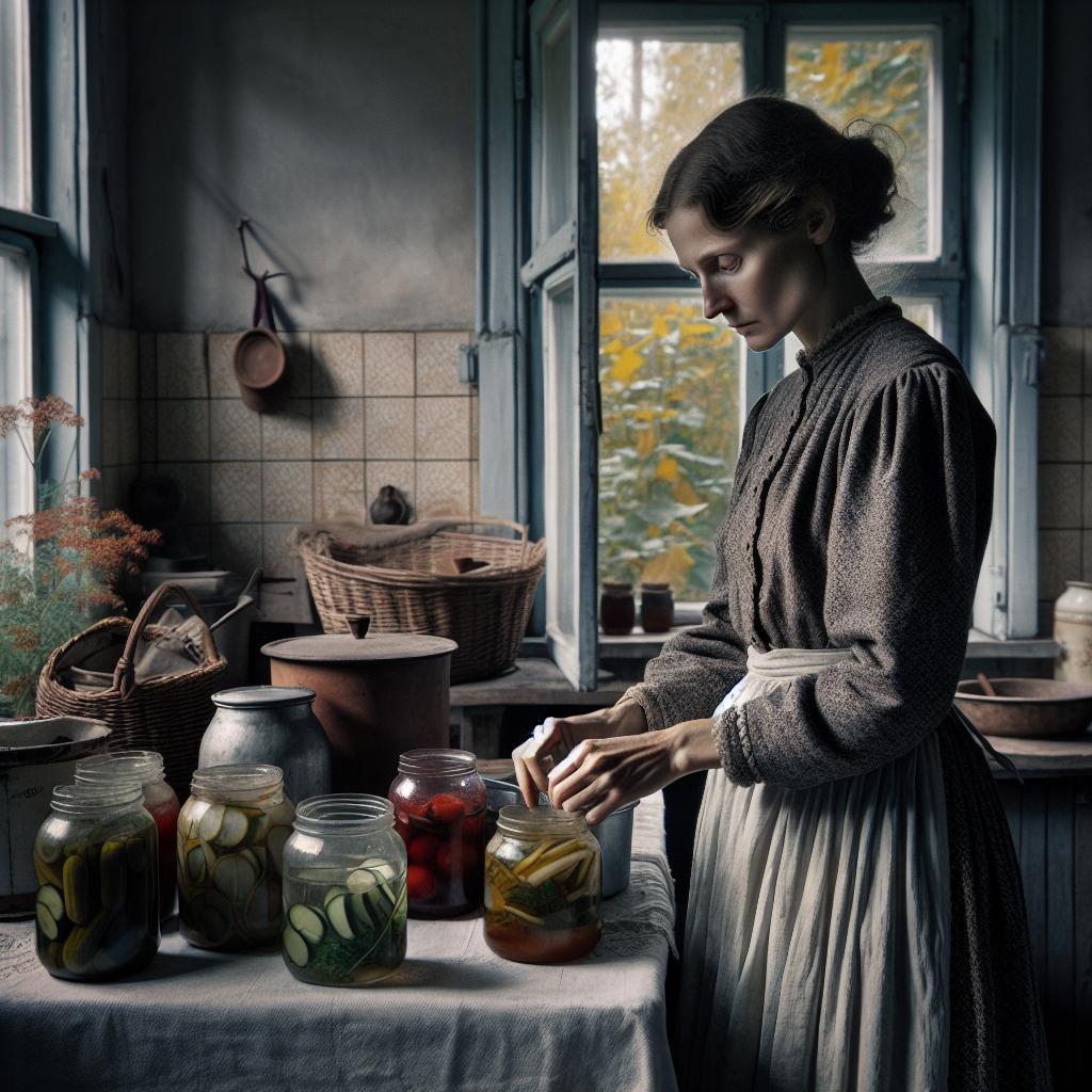 – Конечно, Лёша, возьми вот огурцы солёные. Я через полчаса приду, а то всё у меня разложено.