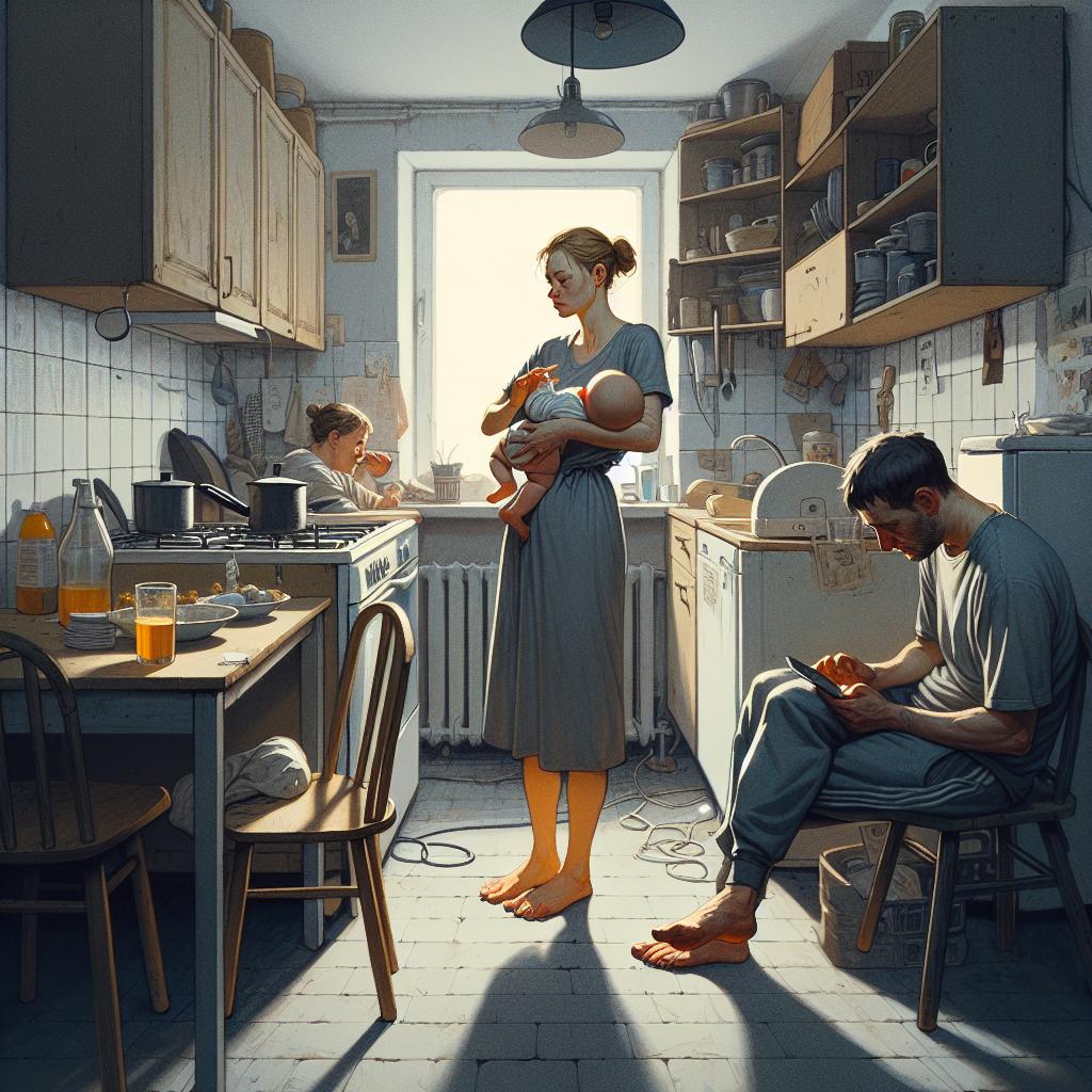 Она стояла в дверях небольшой, тесной кухни, укачивая малышку Катю на руках.