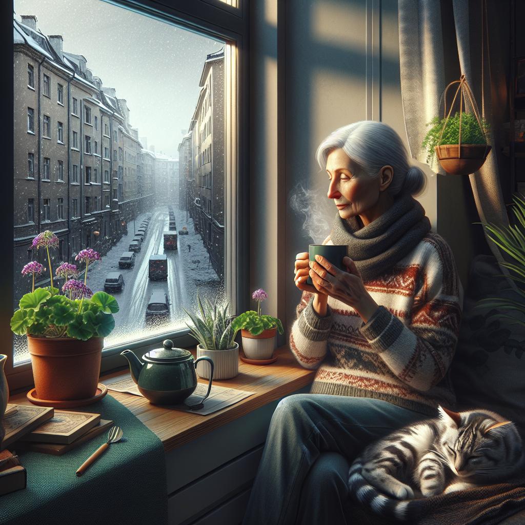 Тамара заварила себе чашку чёрного чая в своей любимой кружке с вытертым золотым кантом и устроилась у окна.