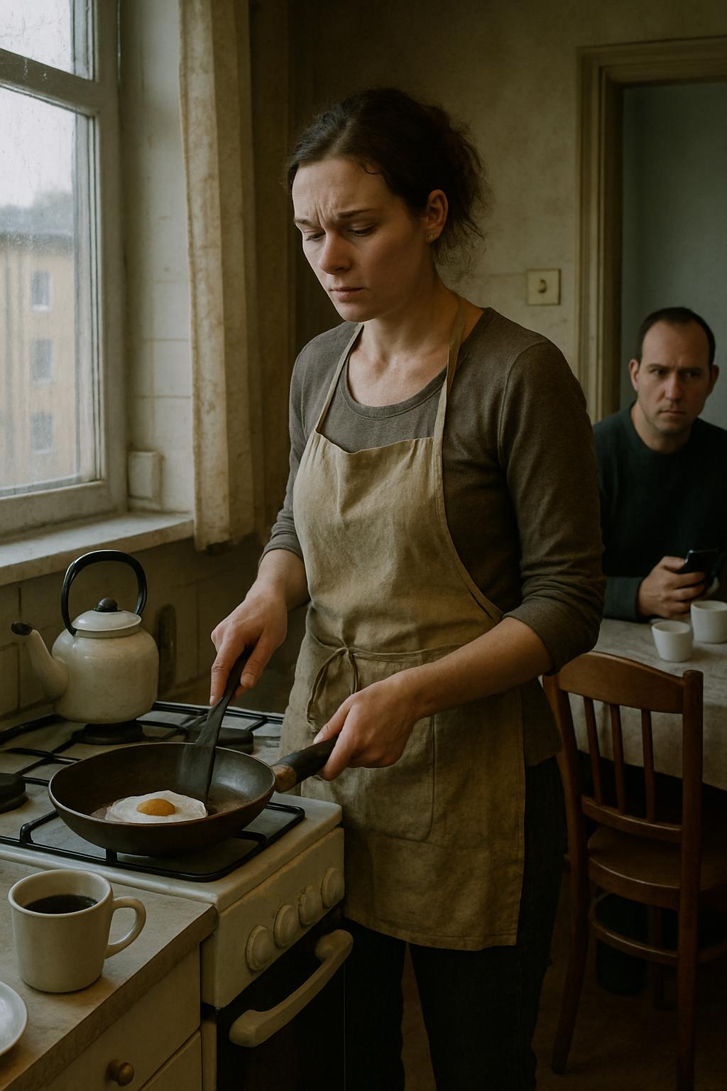Алена стояла у плиты, аккуратно переворачивая яичницу на сковороде.