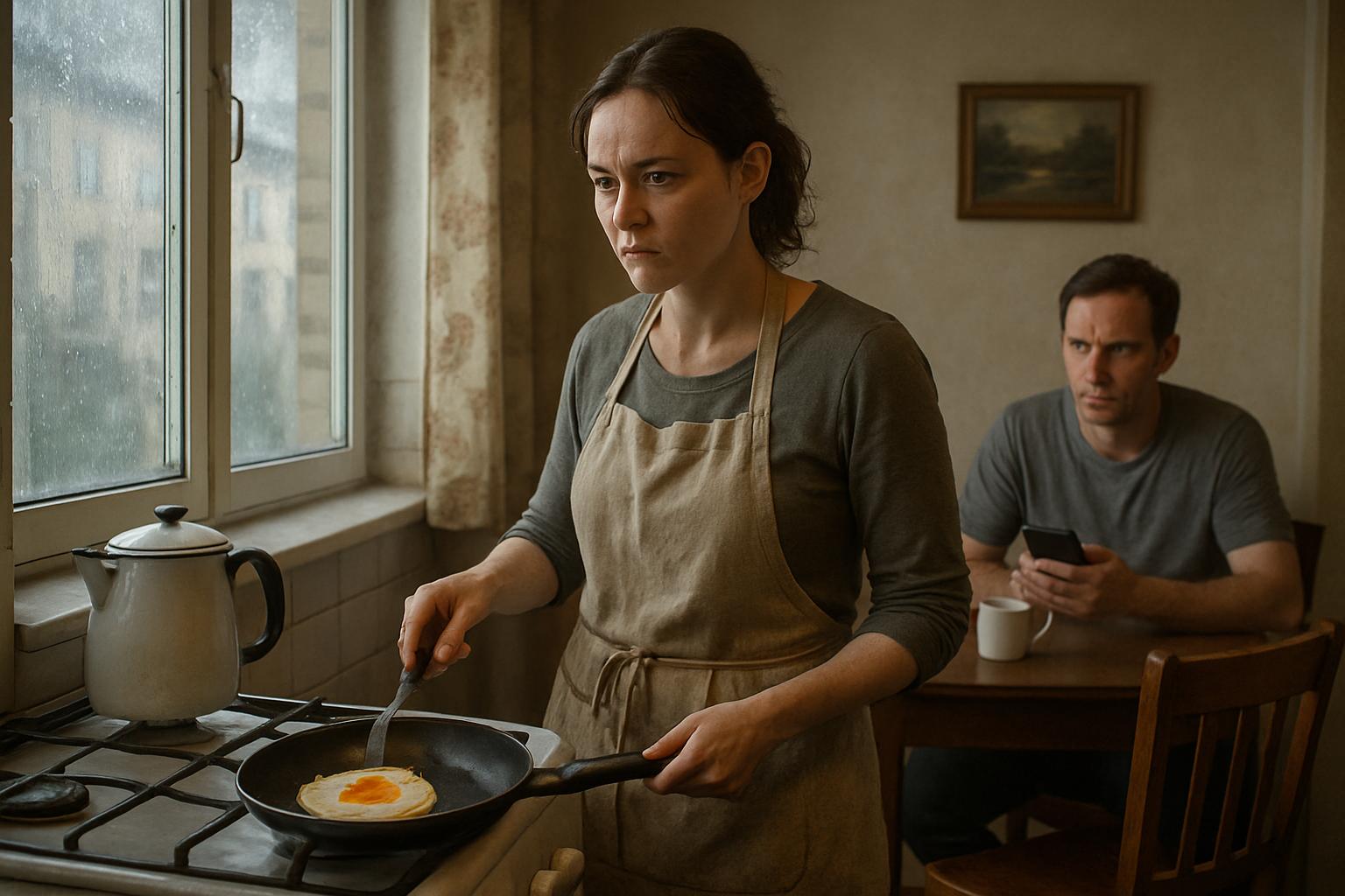 Алена стояла у плиты, аккуратно переворачивая яичницу на сковороде.