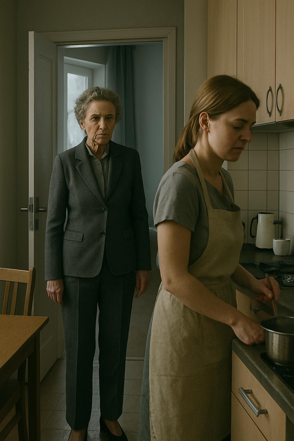 Сковорода тихо шипела, а запах подгоревшего лука смешивался с холодным воздухом, который свекровь принесла с собой.