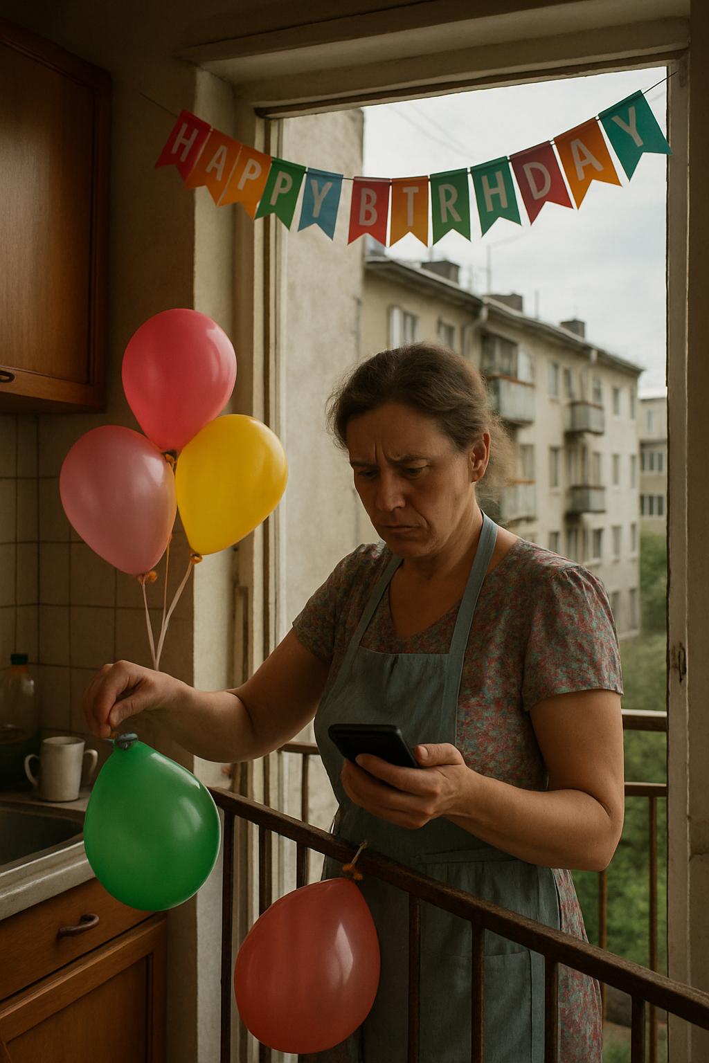 Она и представить не могла, что соседская вечеринка провалится с треском, и гости переместятся прямо в её двор, украшенный разноцветными гирляндами, коронами из магазина «всё по гривне» и тем, что не купишь за деньги — искренней радостью.