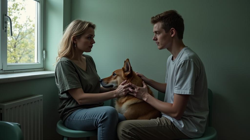Тамара сидела на пластиковой скамье, прижимая к себе Ладу — собака дрожала, уткнувшись мордой в её колени.
