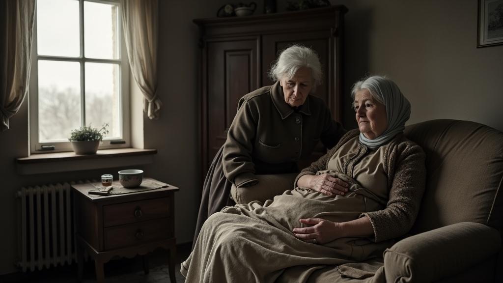 — Хочу крепкого ребёнка, чтобы пошёл в моего сына — душевного, ласкового и сильного. Не обижайся, что скажу, у тебя слишком узкий таз, боюсь, ты слабовата, не знаю, как родишь. Как же малыш выйдет? Сил у тебя нет, но не бойся, Бог даст тебе силы. Ангельская душа найдёт спасение. Просто молись от всей души, проси помощи у Бога, потом ты отработаешь Ему, все долги отдашь. Про меня не думай — я крепкая, у меня запас сил в руках и в спине, могу долго работать без еды. А ты береги себя, не наделай беды. Бог дал ребёнка — наша задача его сохранить. Ешь с силой. Я приглашаю повитуху вовремя, не плачь, а делай всё, что она скажет.