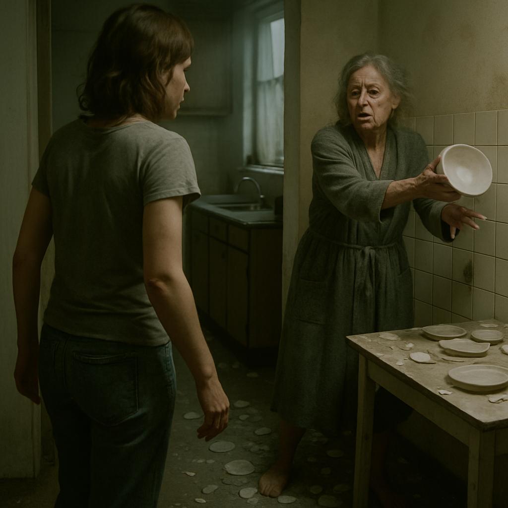 Из кухни доносился звон разбитого стекла, а затем глухой стук — словно что-то тяжёлое бросили в стену. — Мам?