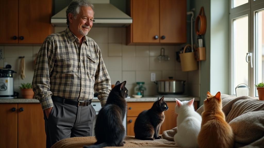 Зато он нежно любил кошек.