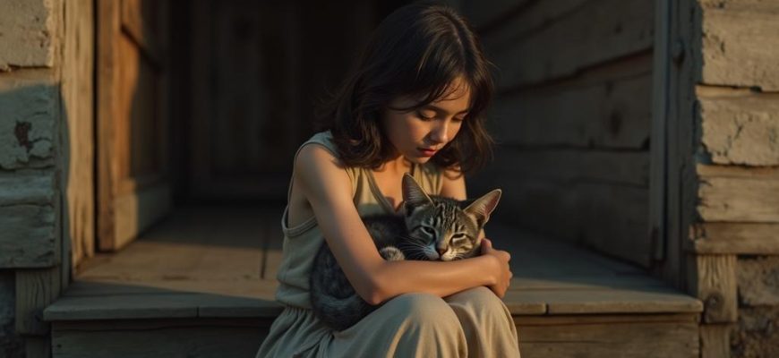 В её тонких, необычайно упрямых пальцах беззащитно лежал худой, лохматый клубок серой шерсти с непропорционально большими ушами. — Барсик, Барсик, ты у меня один, один и ластишься, — тихо говорила она, прижимая котёнка к щеке.