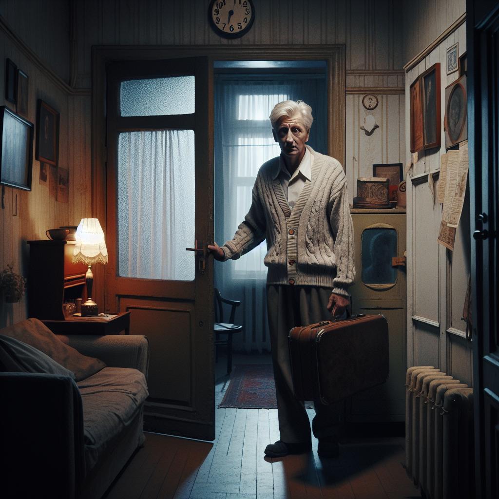 Тамара открыла дверь и увидела отца с чемоданом. Сергей Иванович стоял в дверном проёме — растерянный, неряшливый, в мятом свитере. За окнами уже царила тьма, часы показывали половину одиннадцатого.