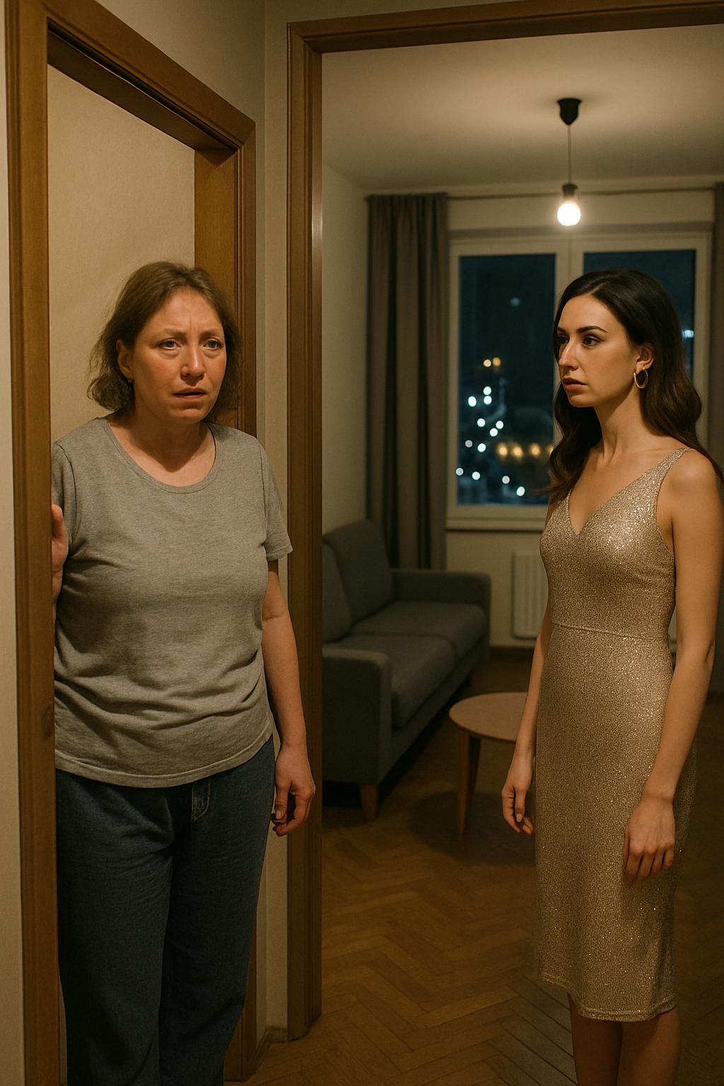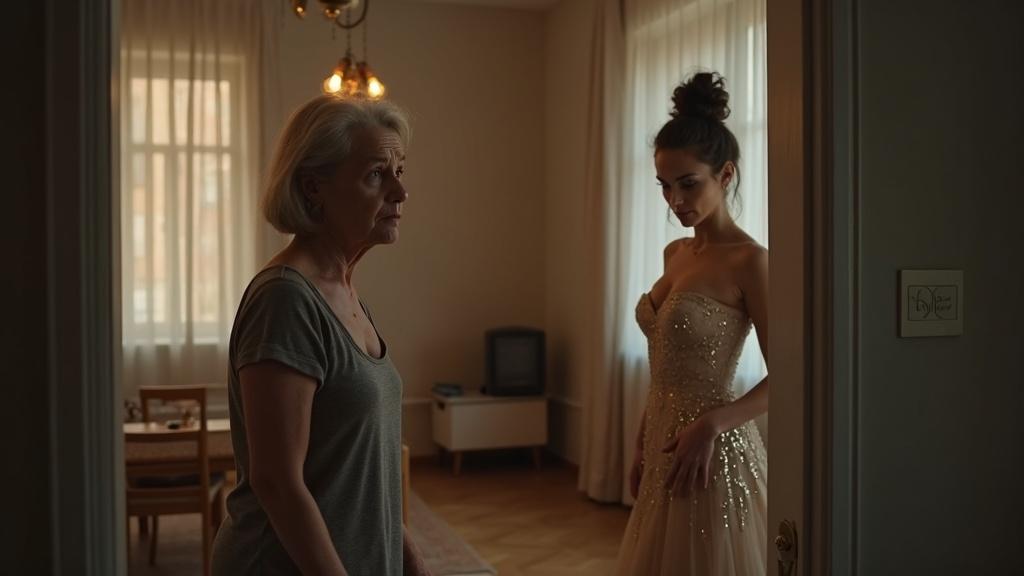 Она уже была наряжена — на ней было шикарное блестящее платье с глубоким декольте, аккуратно уложенные волосы и праздничный макияж.