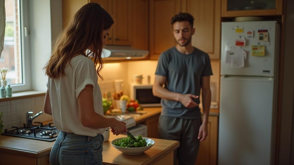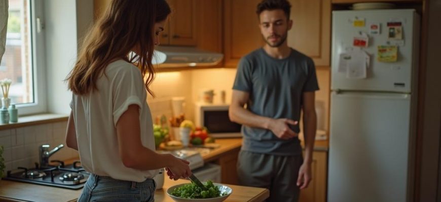 Он обычно приходит раньше и мог бы сам что-то приготовить, но предпочитает лежать на диване.