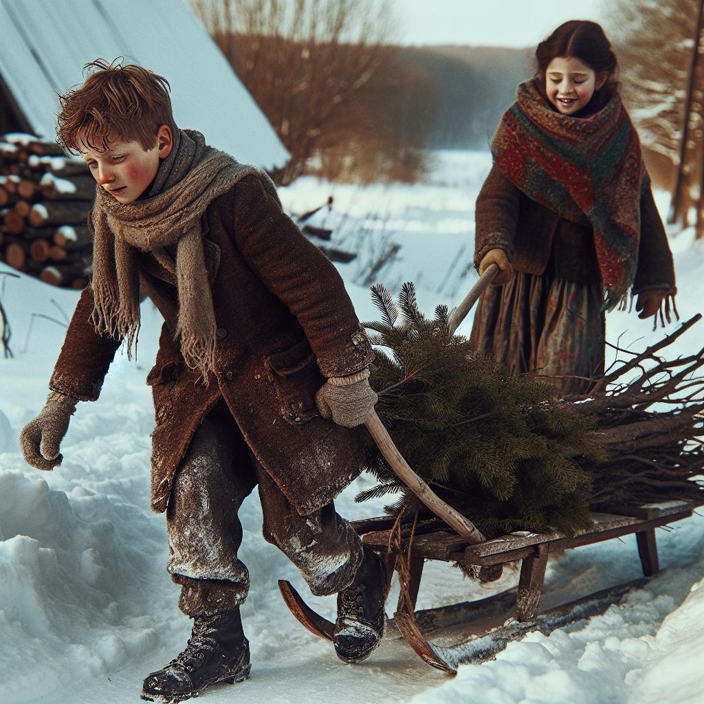 Илья, шмыгая носом, волочил на больших санях сухие сосновые ветки, которые упали прямо у окраины деревни. Обычно брать такое не разрешалось, но местный лесник дядя Владимир подсказал Илье: «Когда стемнеет, забирай».