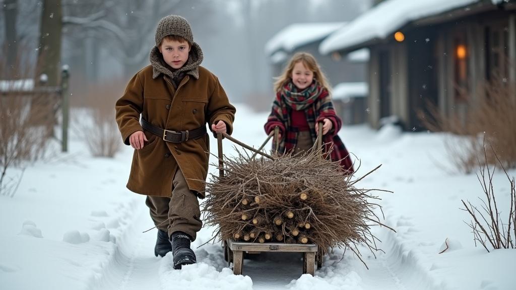 Илья, шмыгая носом, волочил на больших санях сухие сосновые ветки, которые упали прямо у окраины деревни. Обычно брать такое не разрешалось, но местный лесник дядя Владимир подсказал Илье: «Когда стемнеет, забирай».