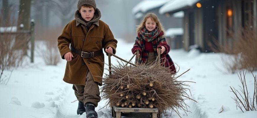 Однако вместе идти стало легче: вдвоём они впряглись в сани и потянули. – «А с детьми кто остаётся, Илья?» – «Бабушка, кто же ещё? Мама на работе». – «А я с уроками помогу, – сказала Ольга, – у вас уже темнеет, и дверь заперта».