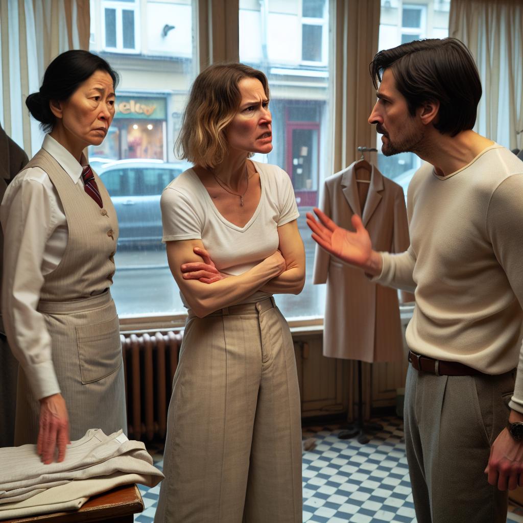 — Женщина, видно же, что вещь вам не подходит по размеру. Почему вы руки тянете? Лишь бы потрогать, а потом мне что с грязными вещами делать?