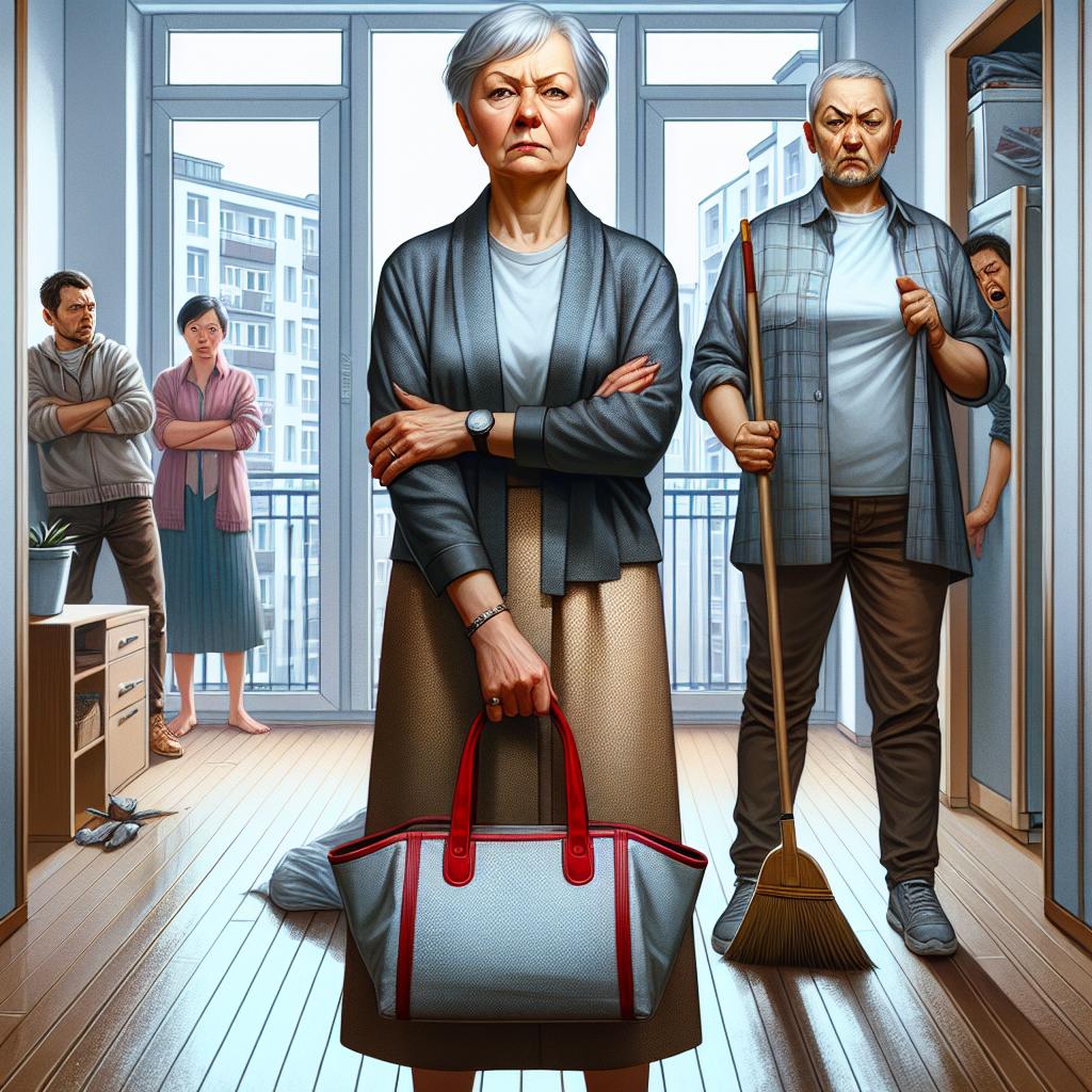 Ольга крепко сжимала швабру, словно это было оружие. — Я просто не понимаю, — тихо произнесла она. — Почему я узнаю обо всём последней? — Потому что у нас, дорогая, семейные вопросы не решаются путём голосования, — ответила свекровь резко и передала сумку Дмитрию. — Сын уже взрослый человек, он всё уладил.