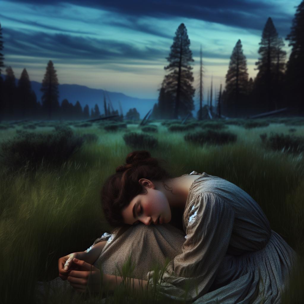 Он уже ушёл, а Оля всё ещё лежала в высокой траве с задранным сарафаном. Её тело и мысли были словно окаменевшими, казалось, что она никогда больше не сможет сдвинуть ни руку, ни ногу — всё вокруг казалось чужим и нереальным. Но вечер, приближавшийся с востока, коснулся травы сине-золотым рукавом, и сильнее заиграла у земли прохлада речного воздуха. Оля пошевелилась, нащупала платок, который сполз с головы. Она села и стала вытаскивать из платка соломинки, затем поправила волосы, оттолкнулась от земли и, словно пьяная, пошла, шатаясь, задевая берестяным пестерем то сомкнувшиеся цветки цикория, то пряный тысячелистник, то анис… Справа от неё дремал лес у Трускавца, неподвижной стеной, а высокие ели молчаливо тянулись к розовеющему небу. Где-то далеко, за лугом, оставалось поле, где мать, отец и старшая сестра пробудут до утра, чтобы продолжить жать рожь, а Олю отправили домой кормить скотину — и никто из них не мог предположить, что домой она вернётся уже совсем другой. У ручья, что вился в лесочке между полем и просторным лугом, за ней увязался парень. Кто он и откуда — Оля не знала, но его лицо казалось знакомым, может, он приходил к ним на гуляния или встречались в поле. Он вел себя дружелюбно, с мягкими женственными чертами, красивыми и невинными, как у телёнка, и Оля не испугалась. Однако в нём было что-то чрезмерно игривое, глаза блестели недобрым умыслом, который Оля уловила не сразу.