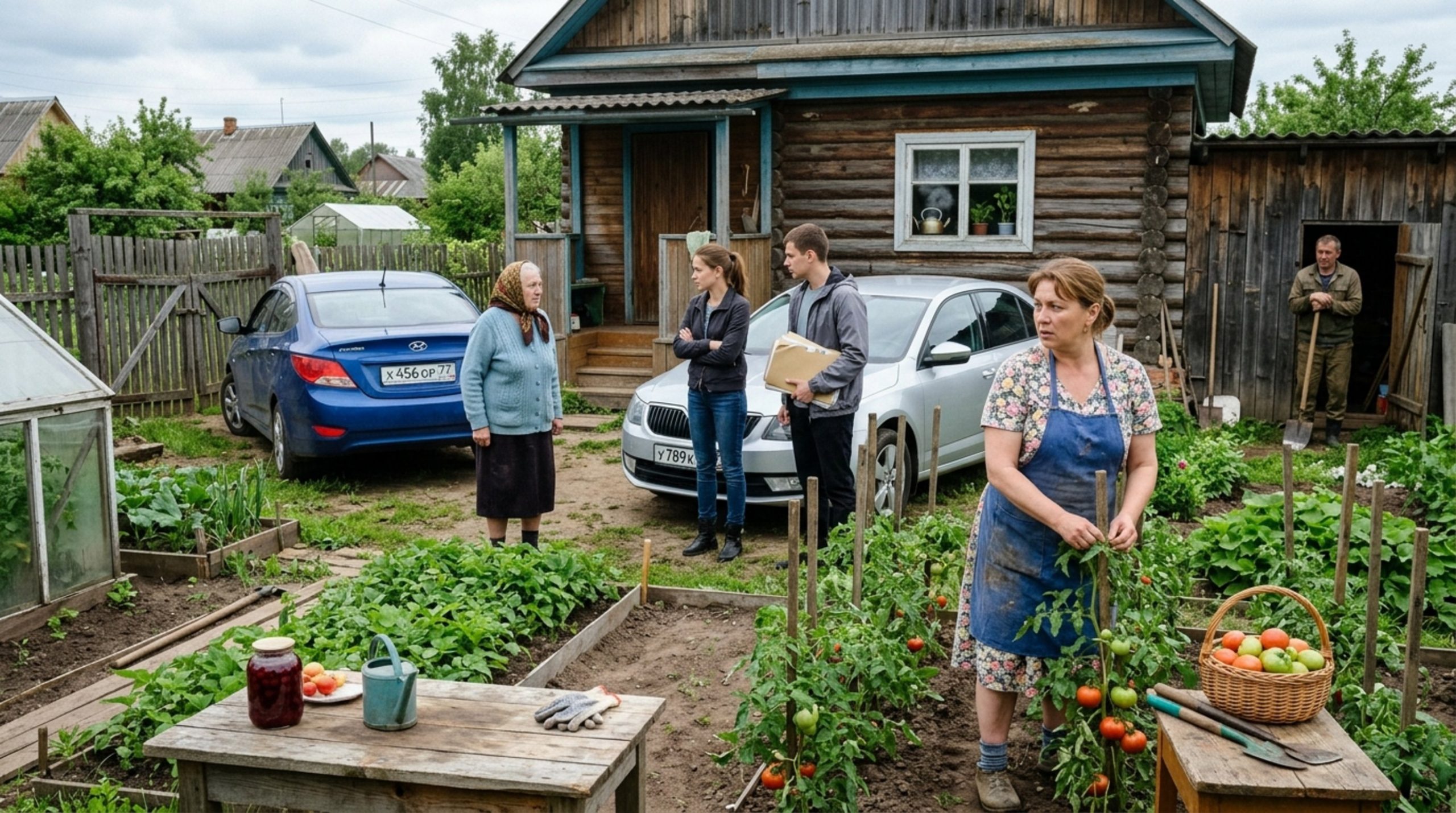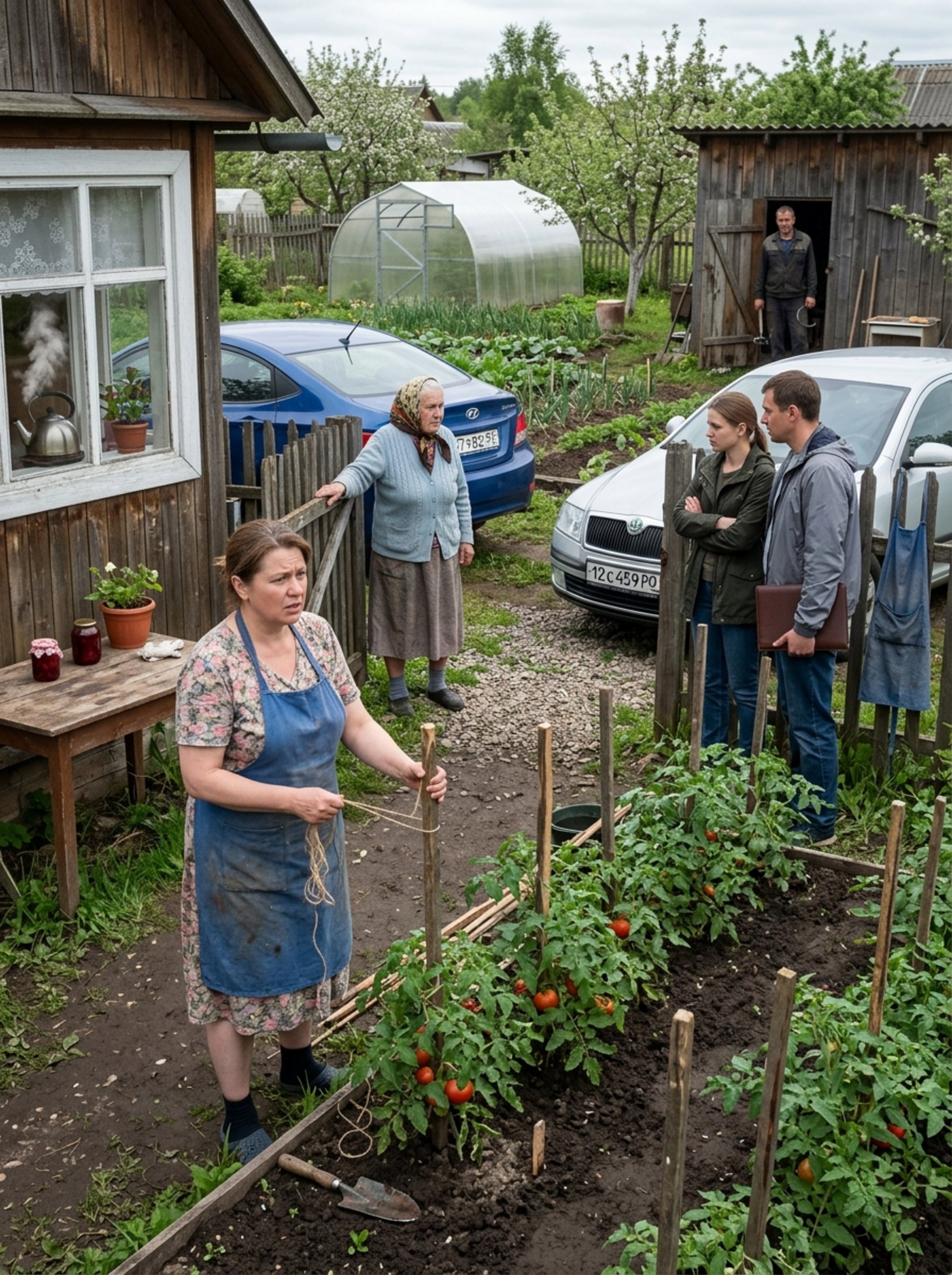Оксана медленно выпрямилась, стряхнула землю с ладоней о фартук. От грядок хорошо просматривался сарай — в дверном проёме стоял Сергей, возился с колесом от тачки. Услышав шум моторов, он вышел наружу, посмотрел в сторону калитки, затем перевёл взгляд на жену. По его выражению лица Оксана сразу поняла: визит сегодня не из разряда случайных.