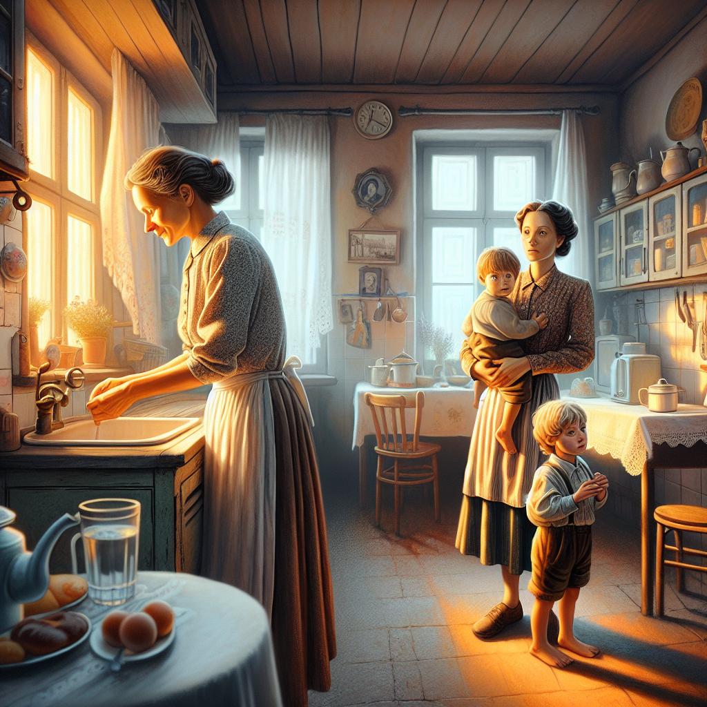 Спустя несколько минут в квартиру вошла молодая женщина с сумками, совсем ещё девушка, толкая перед собой двух маленьких мальчиков двух-трёх лет, которые были точь-в-точь похожи друг на друга и отдалённо напоминали их сына на старой фотографии сорокалетней давности. — Здравствуйте! — произнесла гостья. — Меня зовут Оксана. — А кто ты такая? — сразу спросил Владимир Петрович. — Сейчас всё объясню! Можно войти? — Мама, ку́сать? — вдруг произнёс один из мальчиков, обращаясь к ней.