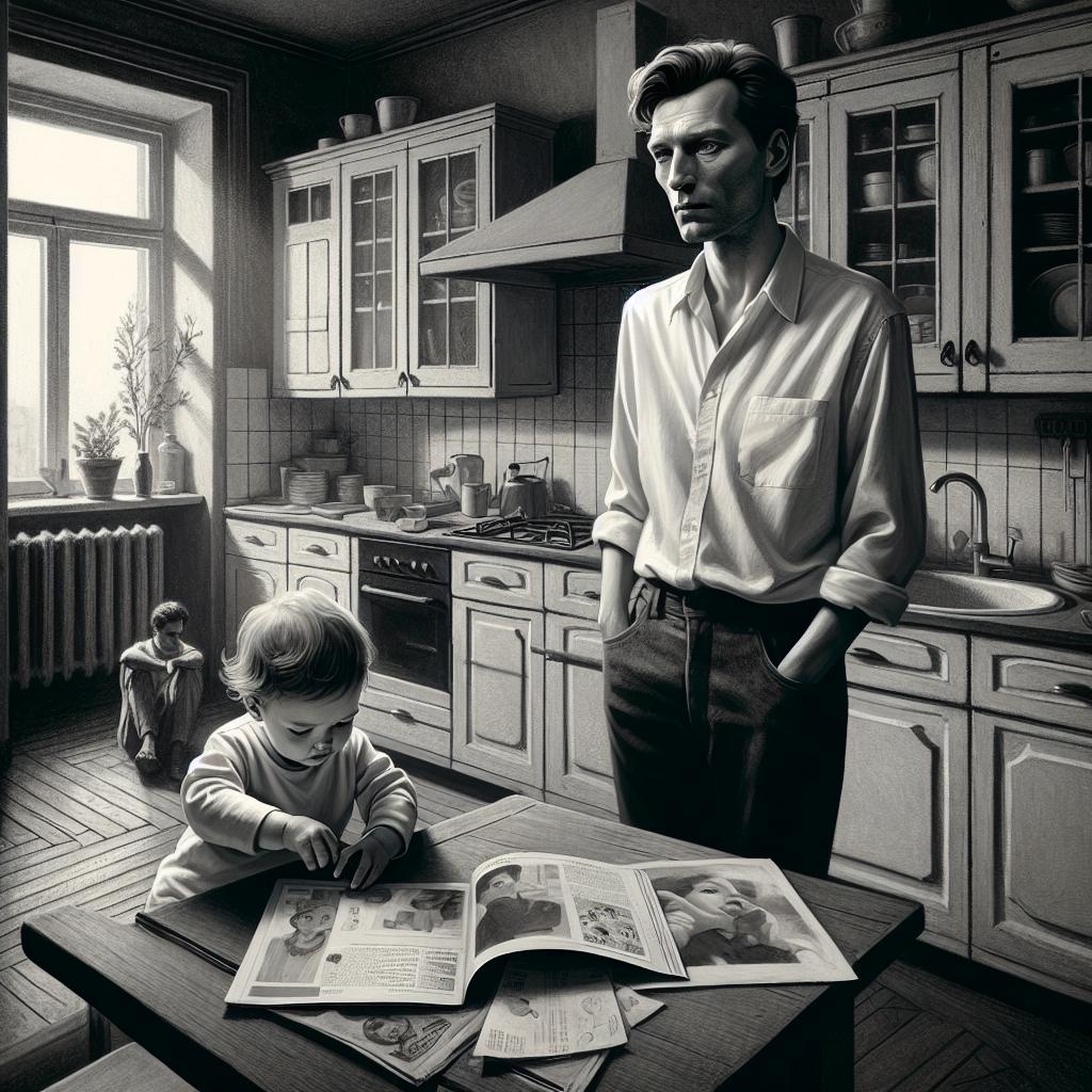 Ольга задумчиво наблюдала за тем, как её дочь ползала по полу, с увлечением рвала на куски старый журнал, в то время как из соседней комнаты доносился звук мультфильма, который смотрел их старший сын.