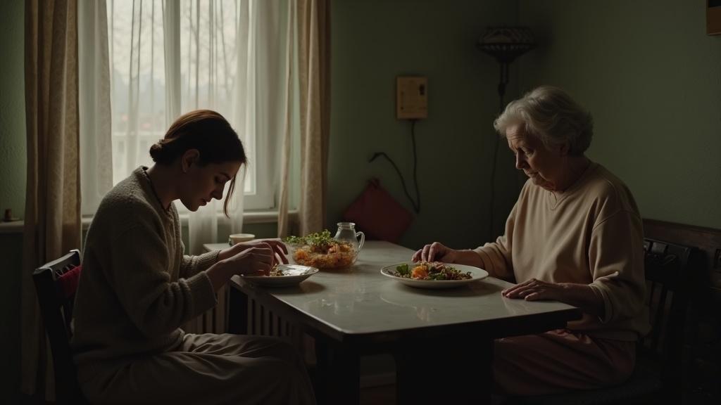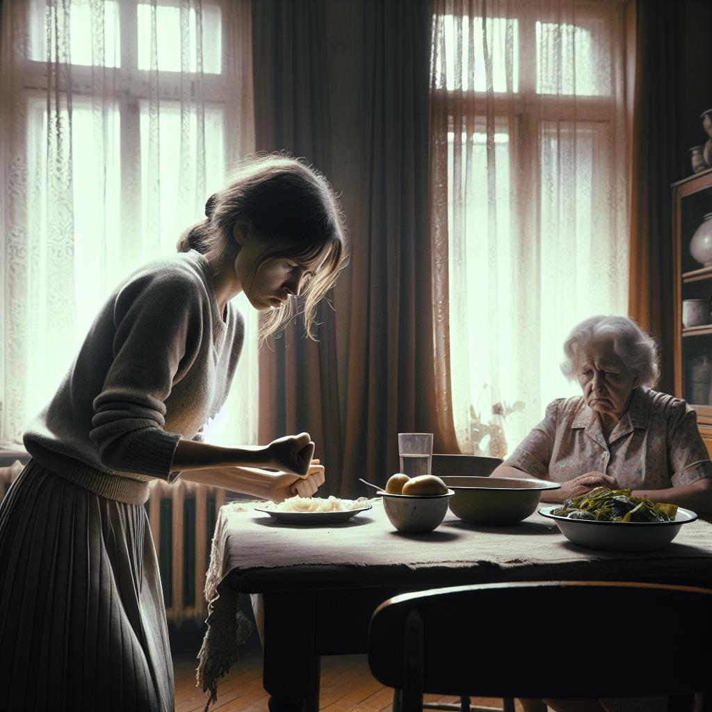 Ольга Вячеславовна усадила свёкров, подала им посуду и приборы. В это время Тамара вела себя максимально отстранённо, словно перед ней были посторонние люди.