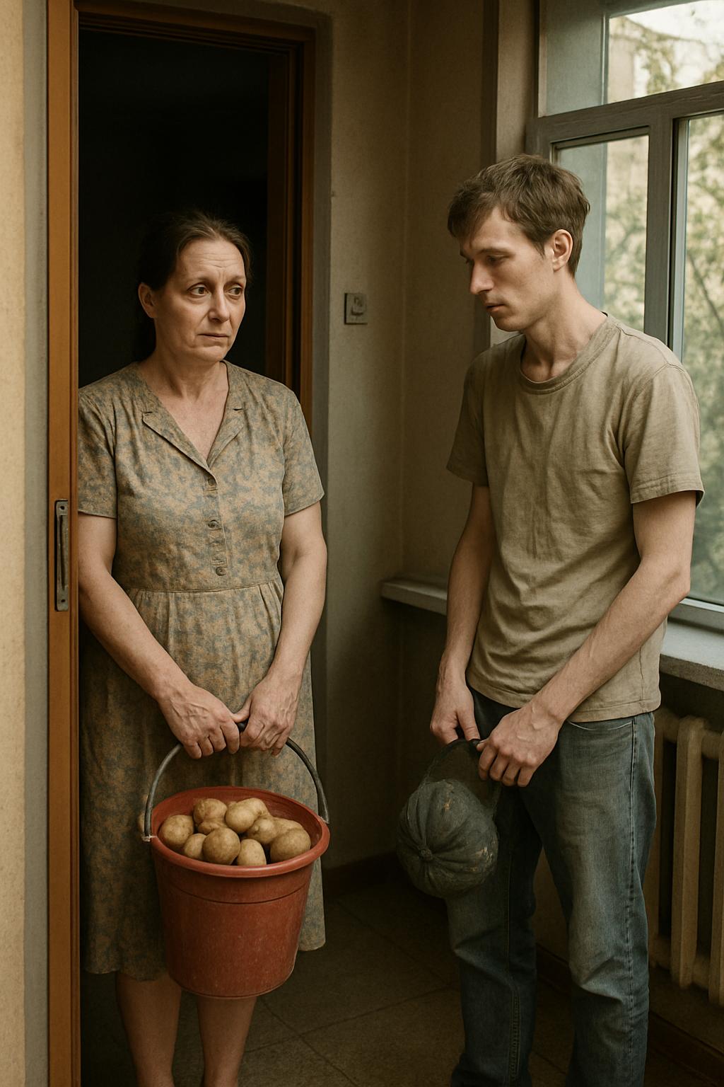 Тамара Сергеевна застыла у входа, держа в руках ведро с картошкой.